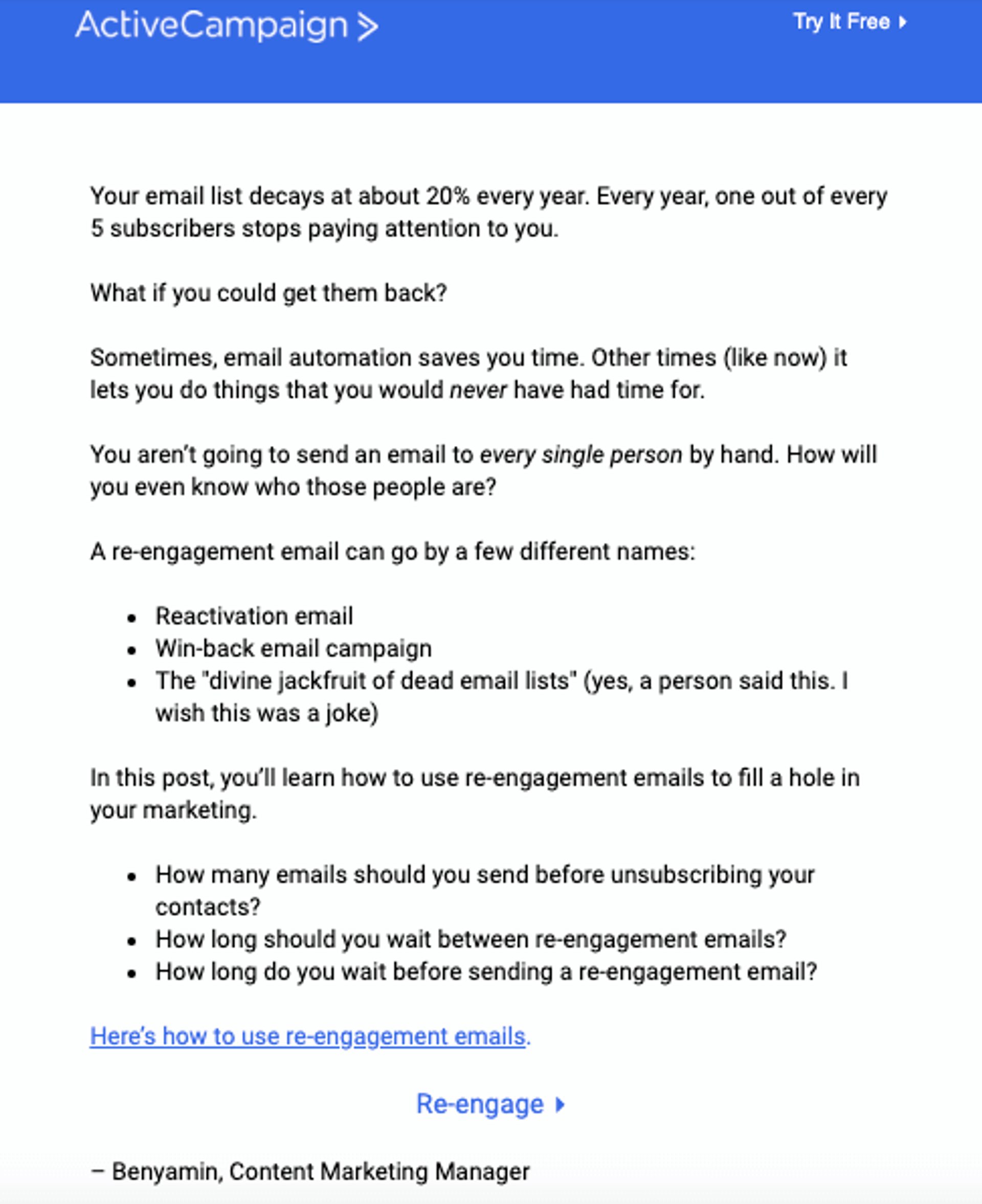 If you’re reading this, it’s probably no secret to you that we have an ActiveCampaign blog full of helpful and entertaining posts.But are you signed up for it? If not, you totally should (and you can here!) but if not, these are what our blog newsletter emails look like.