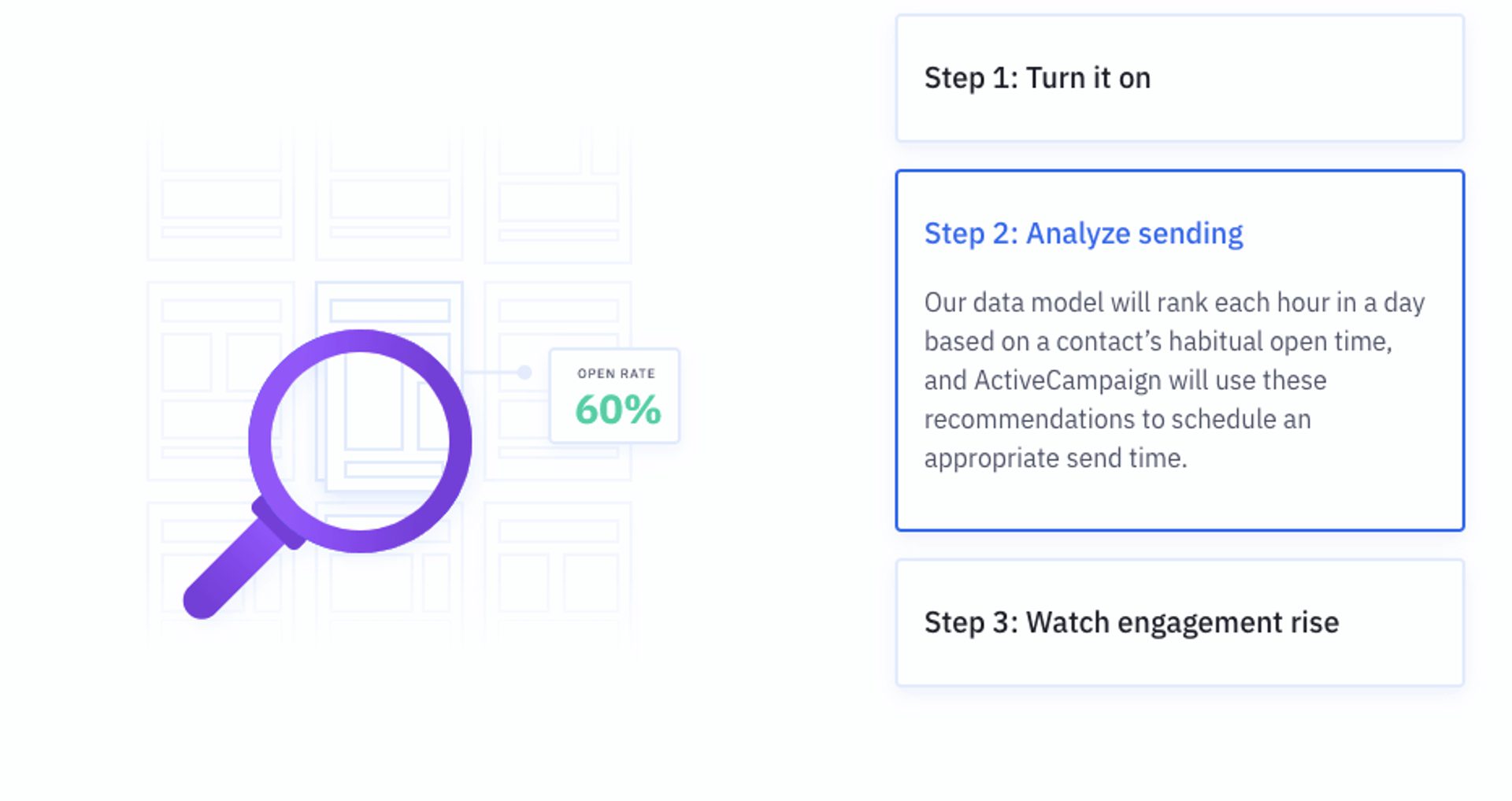 How ActiveCampaign predictive sending works in 3 simple steps.