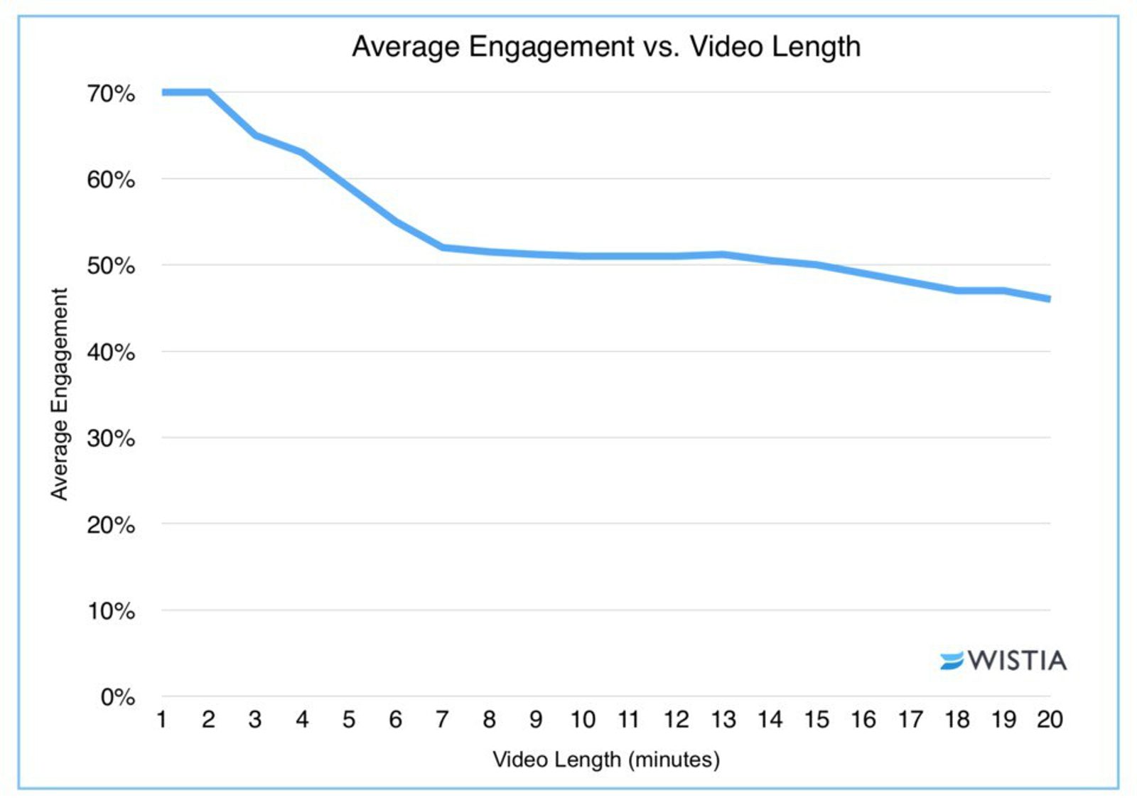 “Engagement is steady up to 2 minutes, meaning that a 90-second video will hold a viewer’s attention as much as a 30-second video. After 2 minutes, every second counts.” (Wistia)