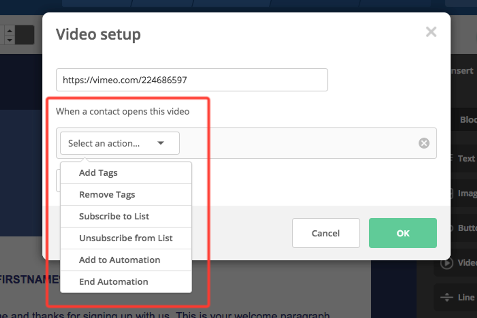 When a contact views your video, ActiveCampaign can automatically add tags, subscribe them to a list, add them to a new automation, and more.