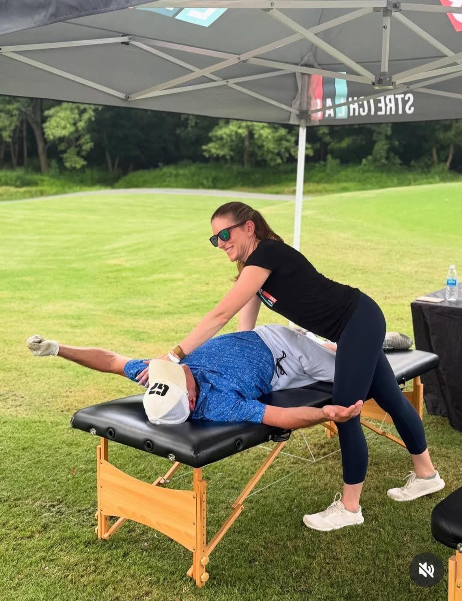 An on-site stretching at a golf course