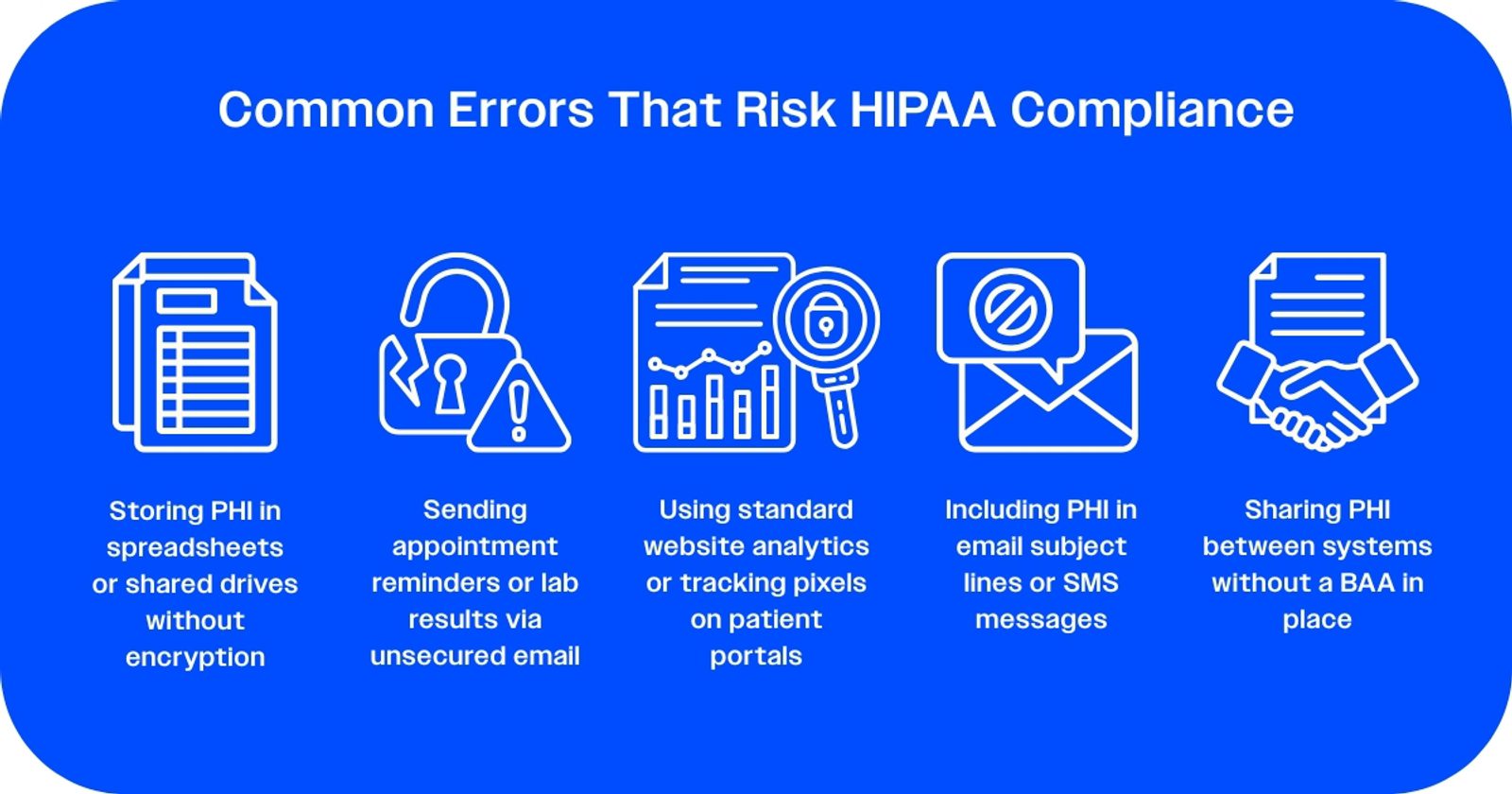 Overlooking any of these can lead to PHI exposure, regulatory penalties, or patient distrust.