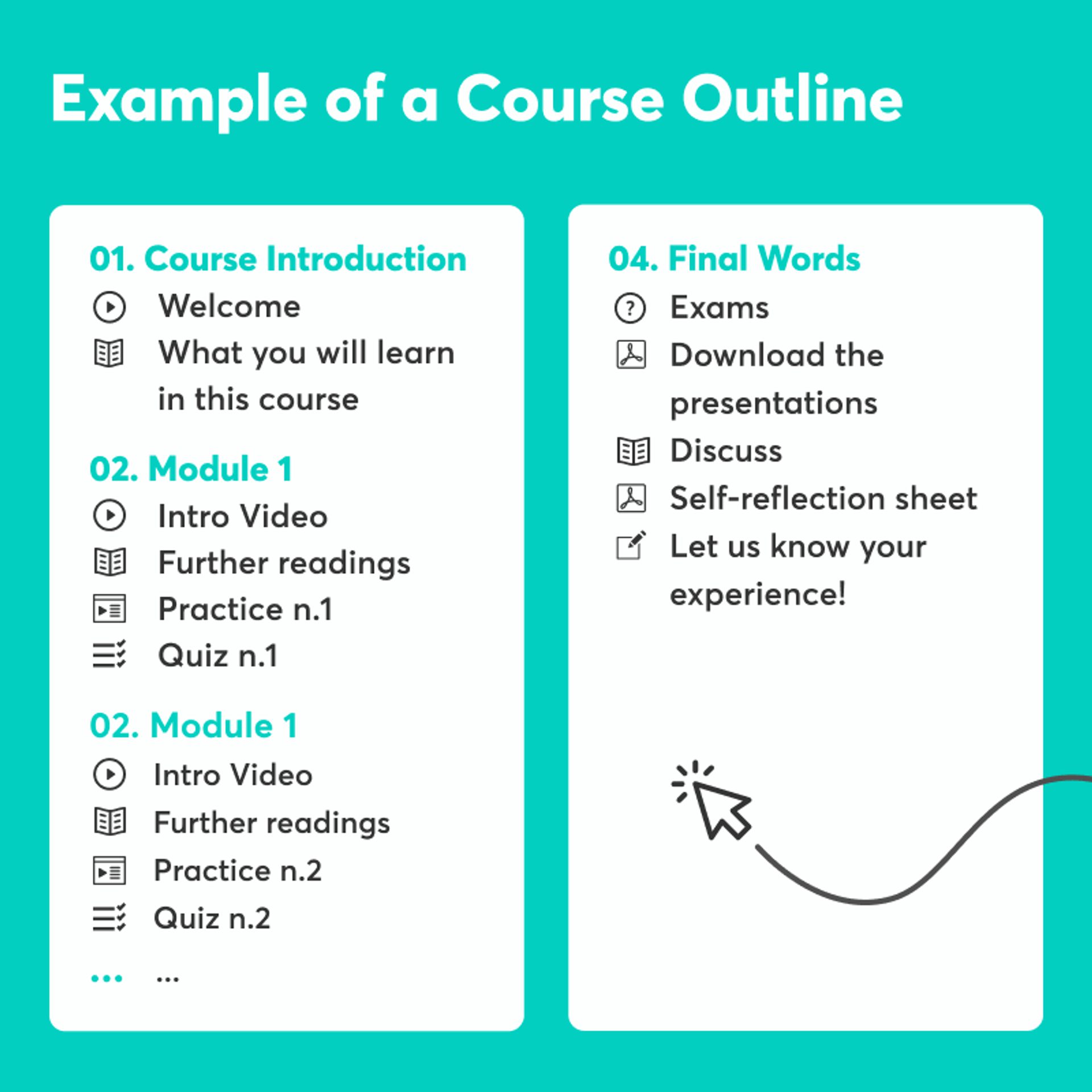 By following these steps, you can create a well-organized and effective online course outline that sets a solid foundation for designing and developing engaging content for your potential customers.
