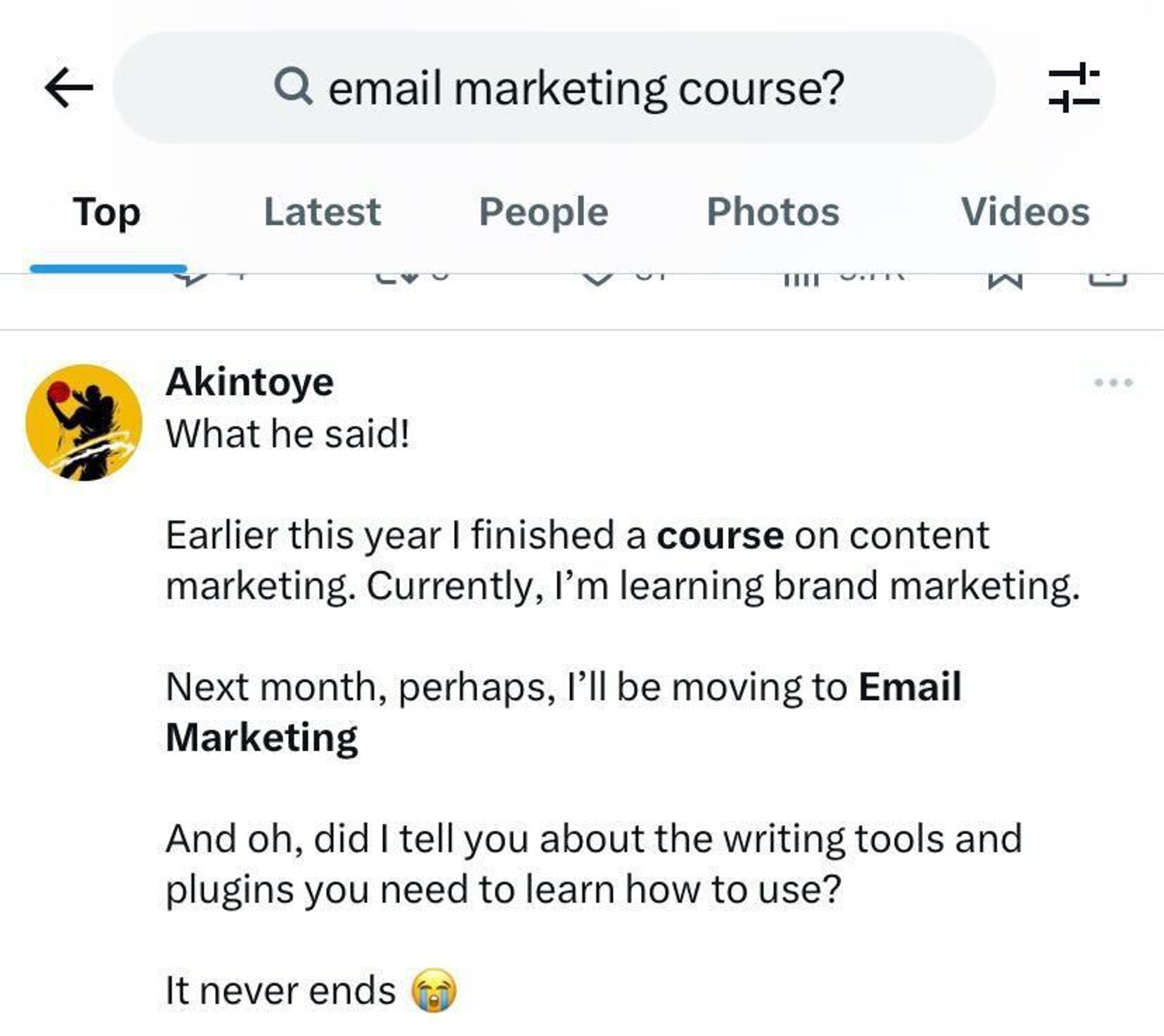 Plus, you can search relevant terms on Twitter and see the current conversations around that topic. Take some time to see if people are searching for specific course topics, and keep that in mind when choosing what you’ll teach.