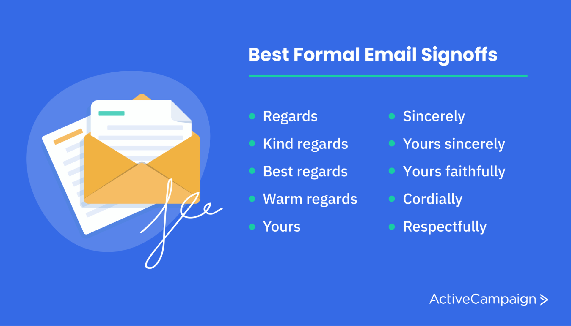 Lastly, close off your email with a short remark such as “Yours sincerely,”. There are quite a few formal email closings that are suitable to use in professional email signatures: