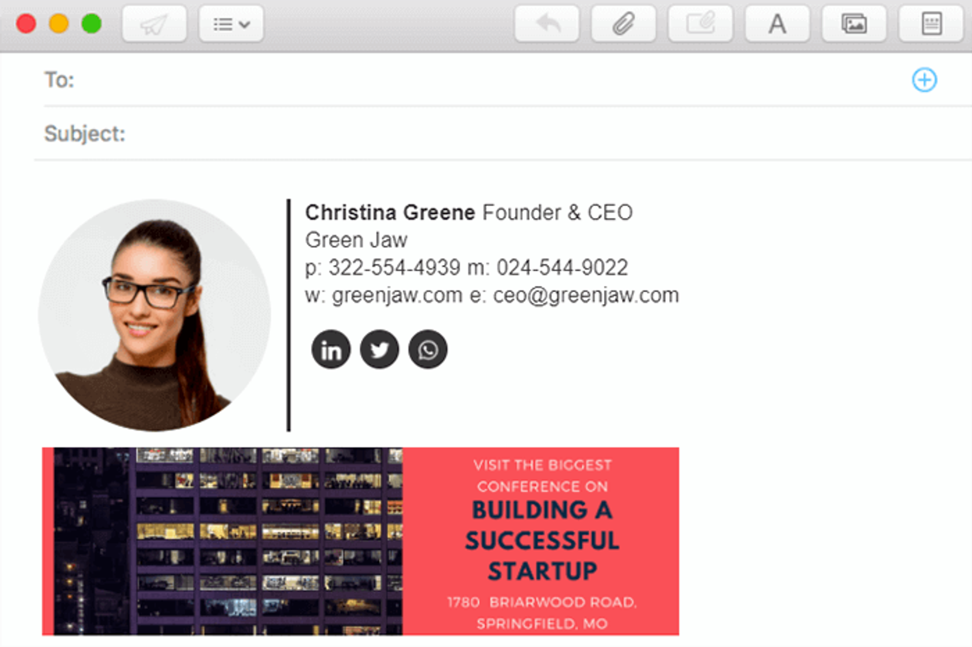 The first section is the subject line. This is displayed at the top of the email, above even the email address, preceding the email body, and tells the reader what your email is about.