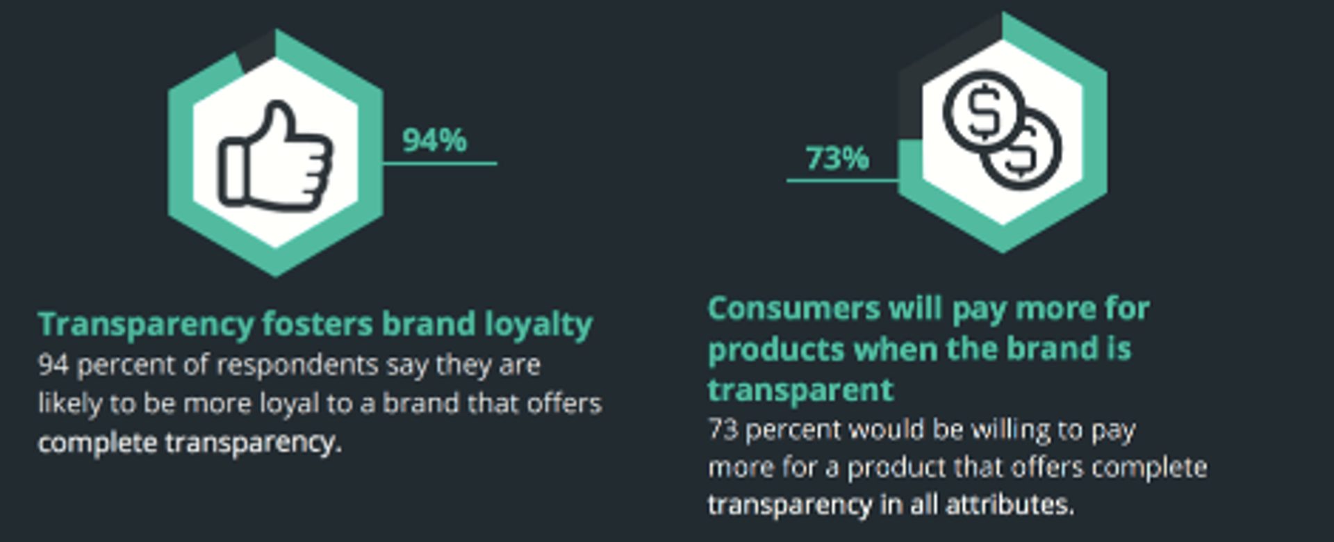 According to a survey done by Label Insight, 94% of 2,000 surveyed consumers said that they would be more loyal to a company that is completely transparent with them.