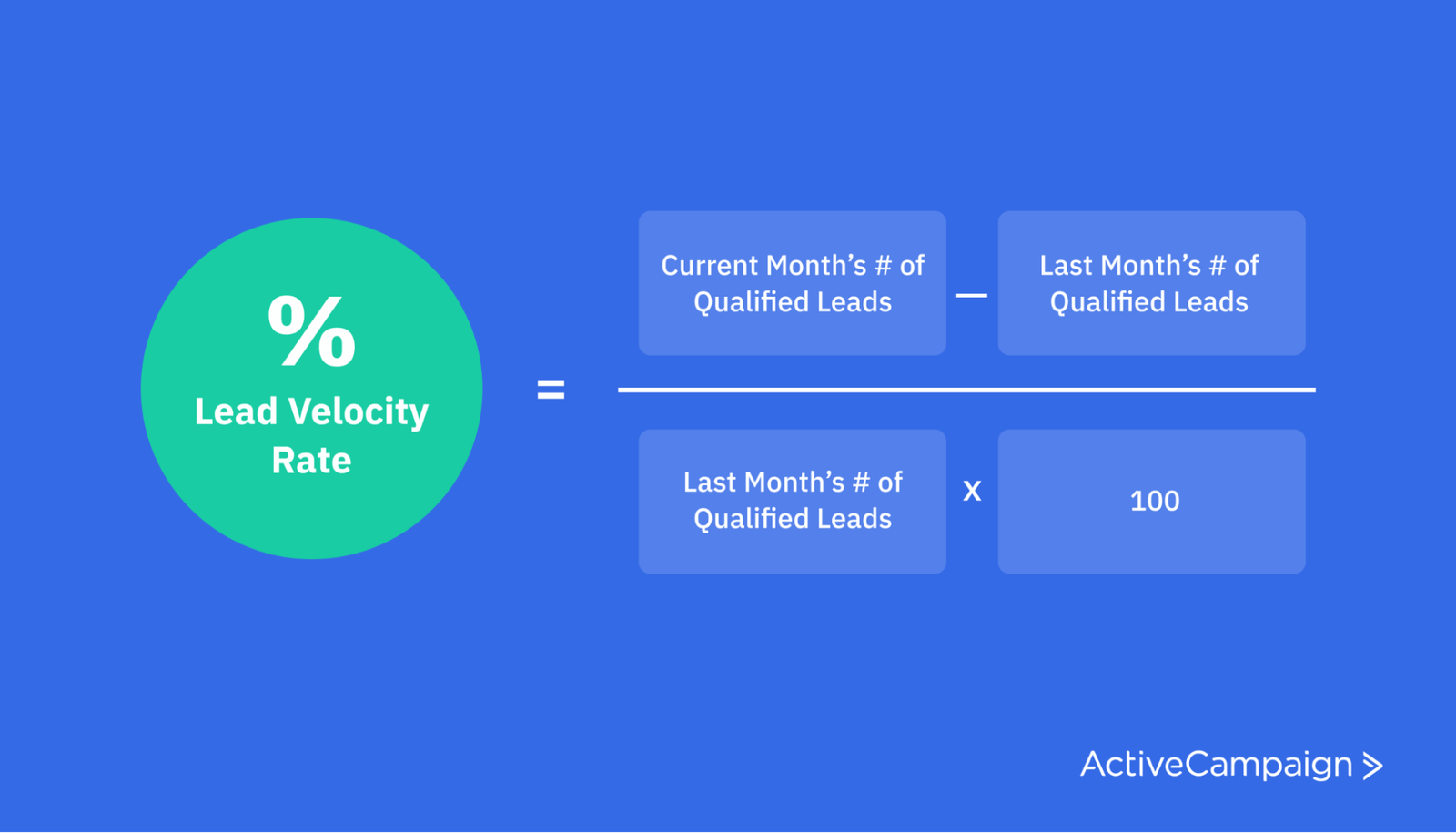 You can determine your lead velocity rate by subtracting the number of qualified leads from last month by the number of qualified leads this month. Then divide the number of qualified leads by the previous month’s qualified leads and multiply it by 100. (Quite a tongue twister, but it works!)