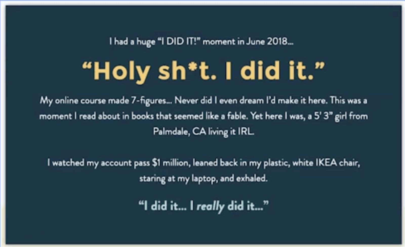 After your webinar, you've got emails that you're going to send. This is an email where Danielle took the same million-dollar story and turned it into an email.“I said, Yes, I made a million. But it was the fact that I kept my word to myself, that was important. And I just retold that same story in the email,” says Danielle....then headed towards a sales page...