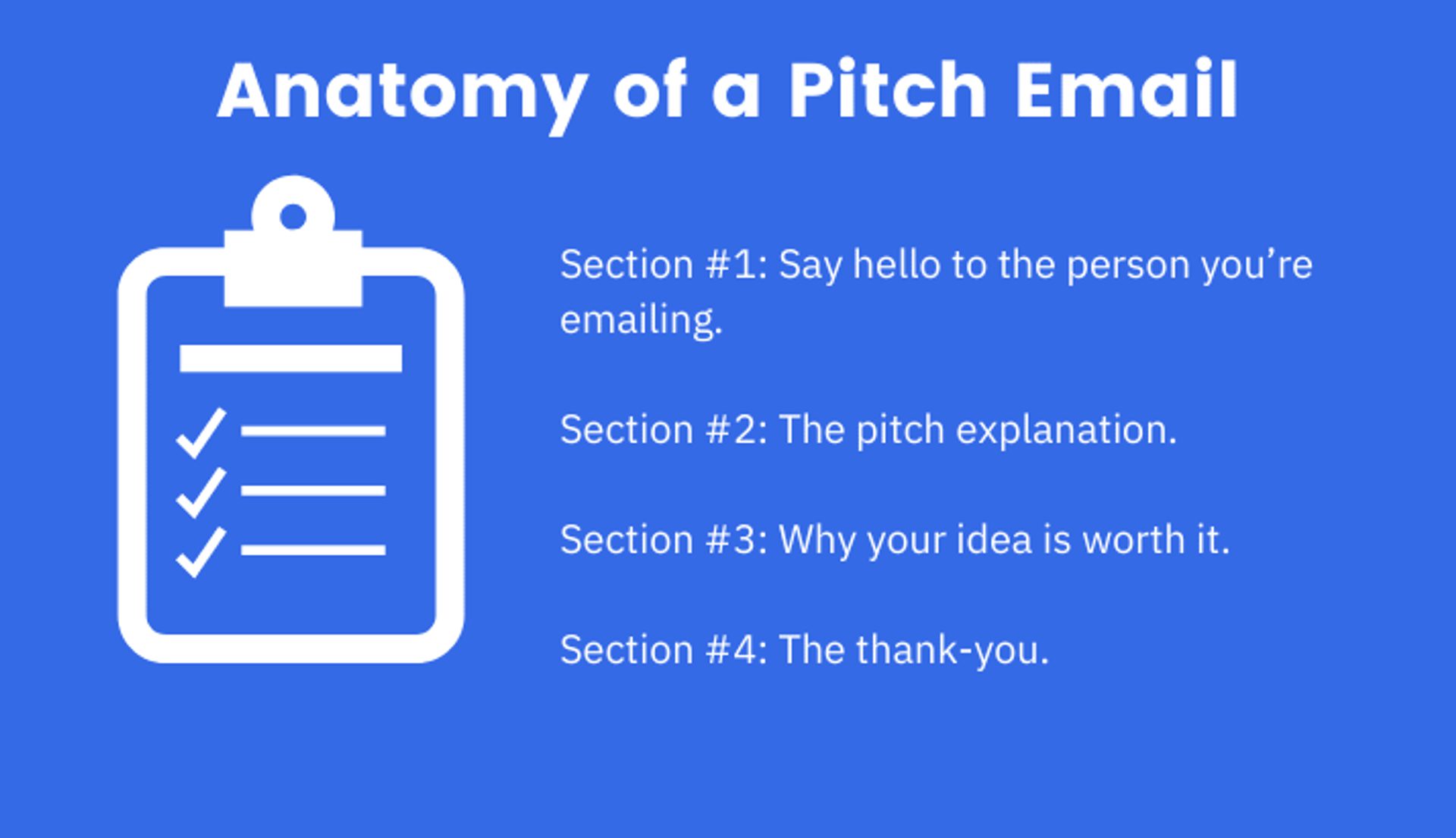 Here’s the basic outline that a pitch email should follow: