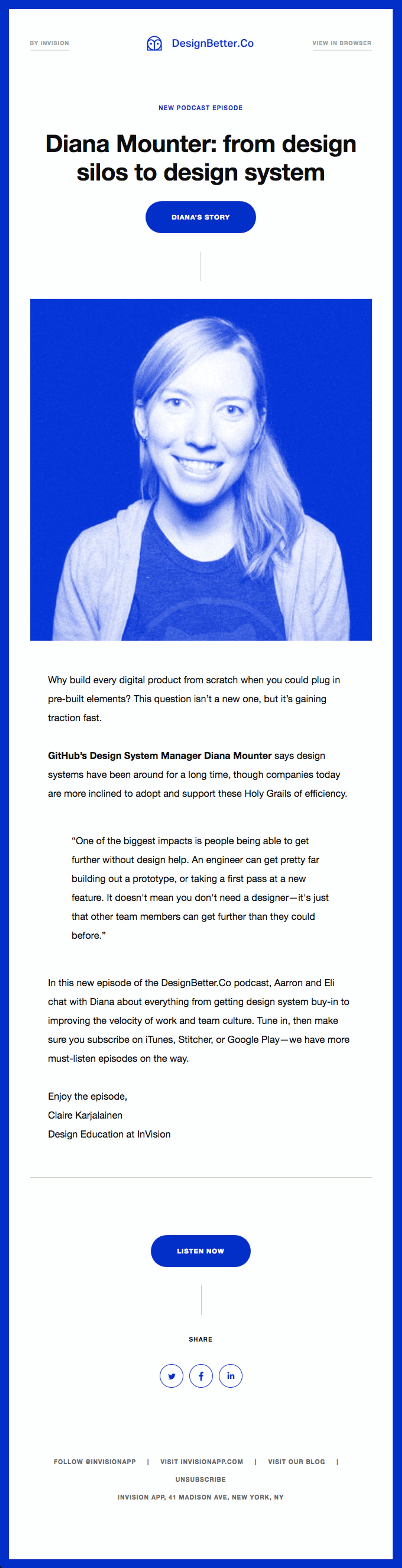 An example of using the CTA at the top and bottom of an email.