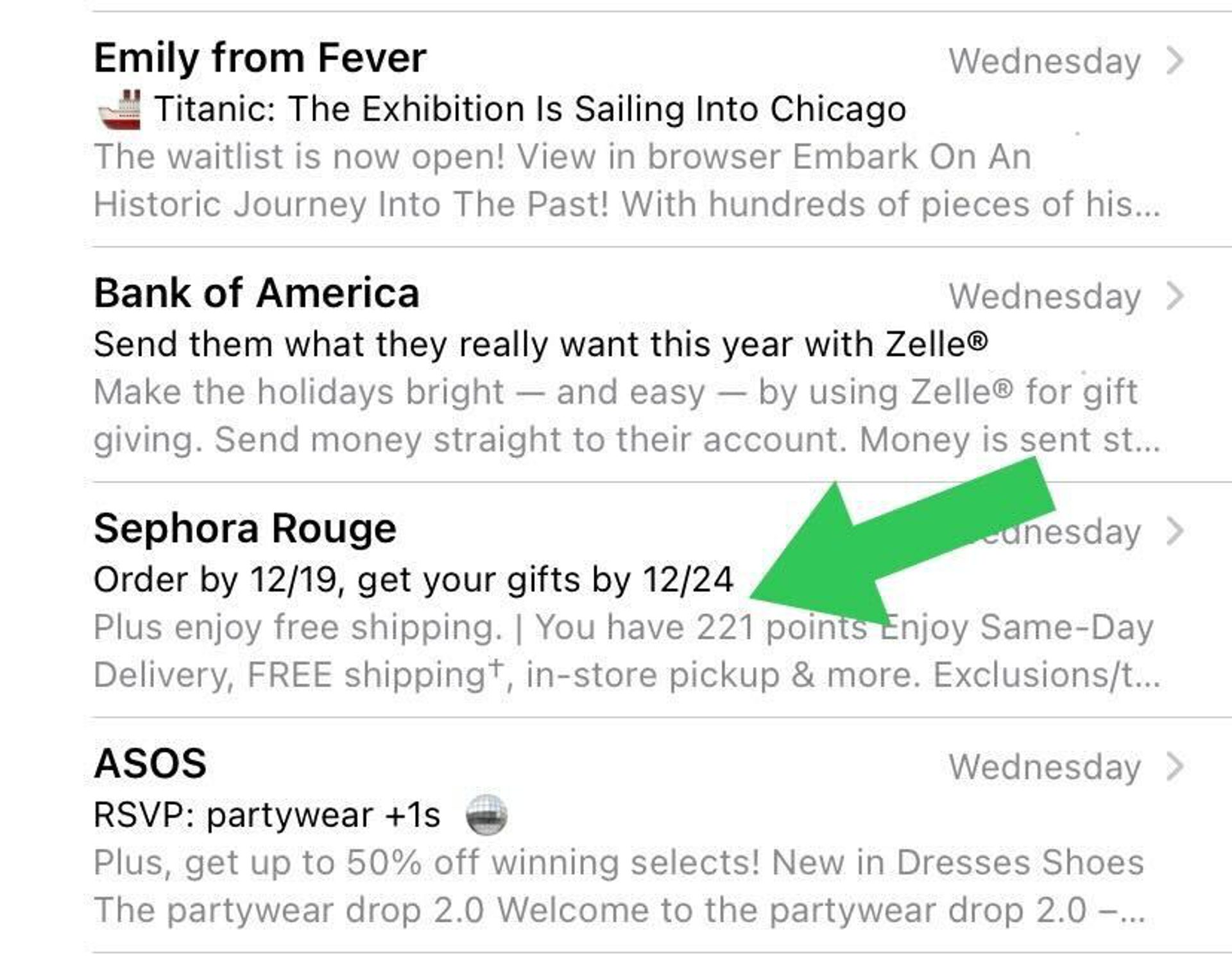 This email from Sephora is a great example of using preheader text to continue the offer in the subject line. If the space is there to communicate a message to your email list, use it! For fast email copy improvements, check out our free email copywriting templates.