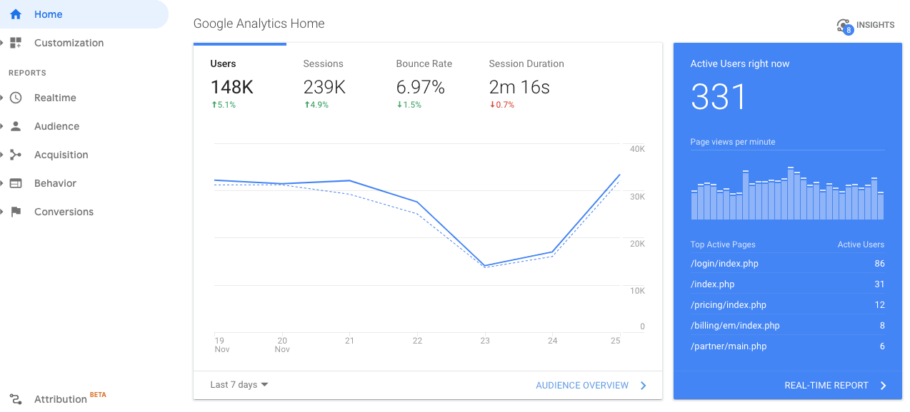 Google Analytics is one of the best metrics tools out there. It gives a lot of useful info – especially for small businesses who don’t need super deep insights – and it’s free (win-win).