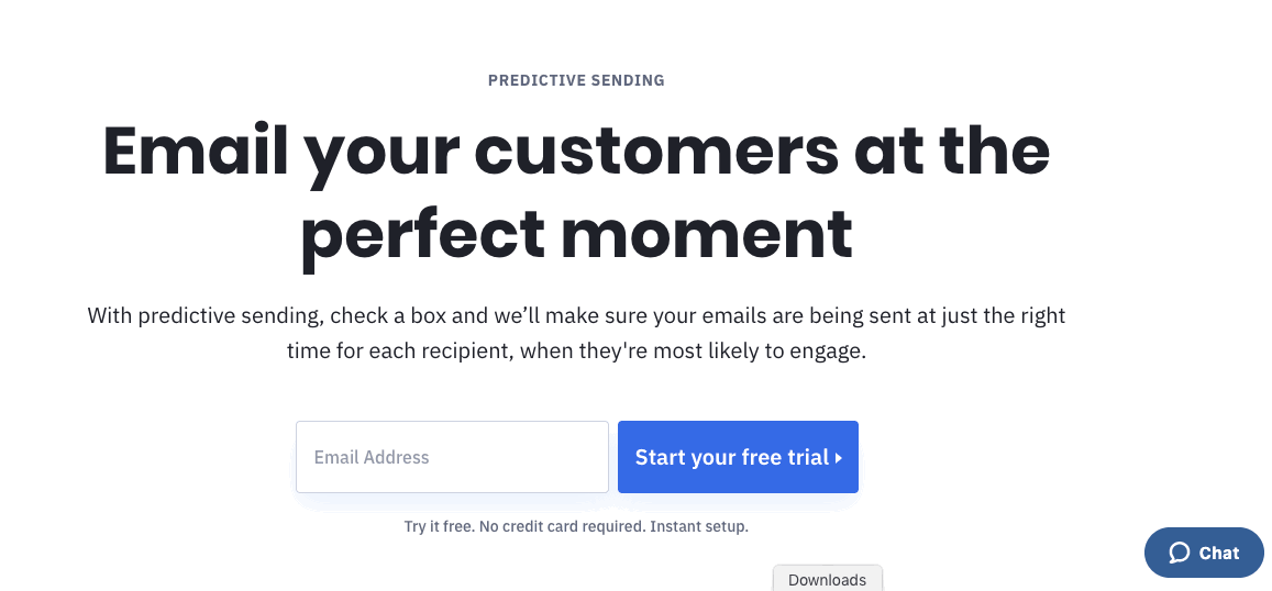 The ActiveCampaign Predictive Sending landing page is a good example of this.