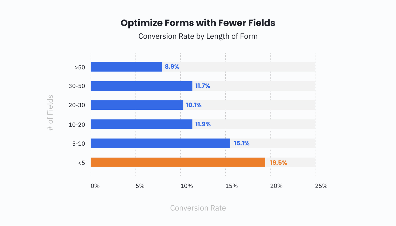 Some research shows that shorter forms have higher conversion rates, while others have shown that removing fields resulted in a 14% decrease in conversions.