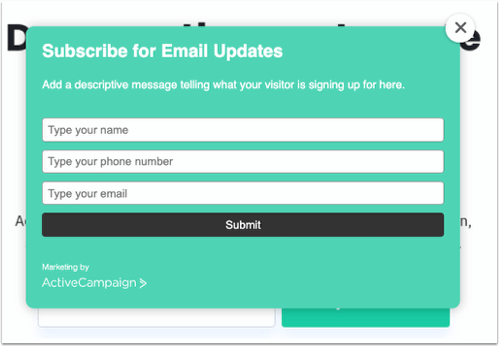With ActiveCampaign modal forms, you can edit the description to inform your visitors of exactly what they’re signing up for.