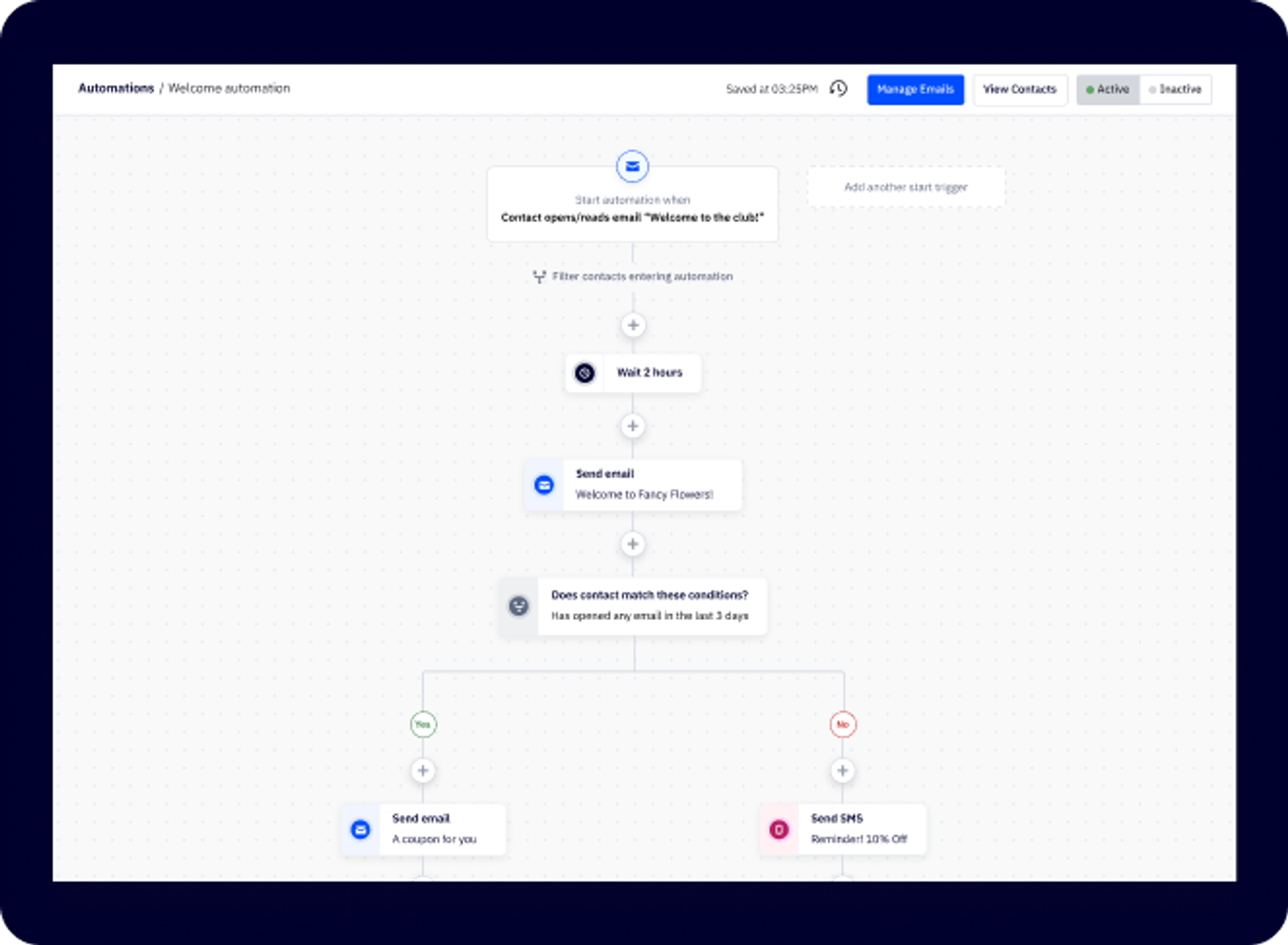 ActiveCampaign’s automation builder lets you set up workflows that instantly nurture leads. For example, the moment someone fills out a form, they can get a personalized email sequence, be tagged based on their interests, and even be assigned to a sales rep if they meet certain criteria.
