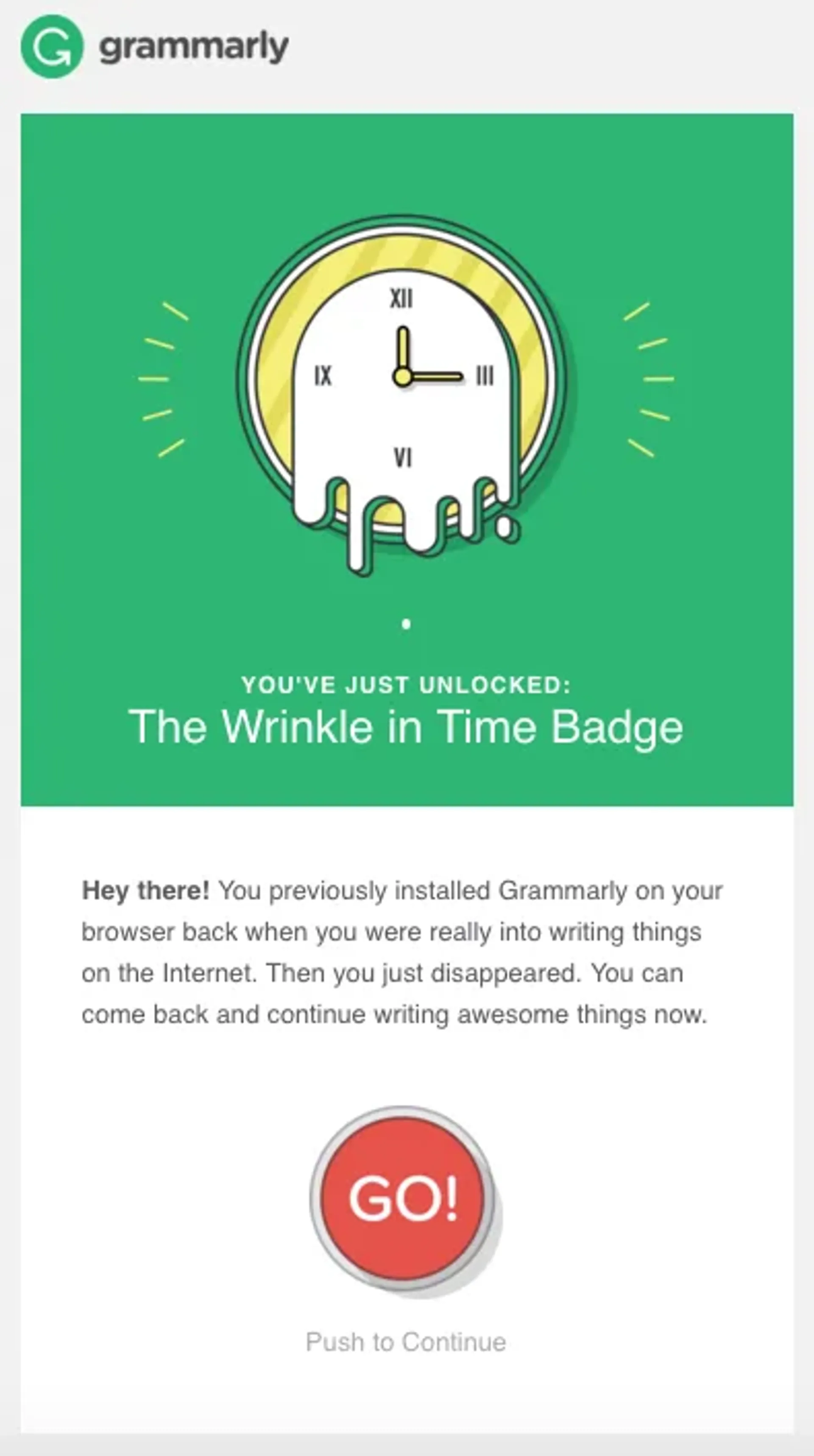 A re-engagement email from Grammarly.
