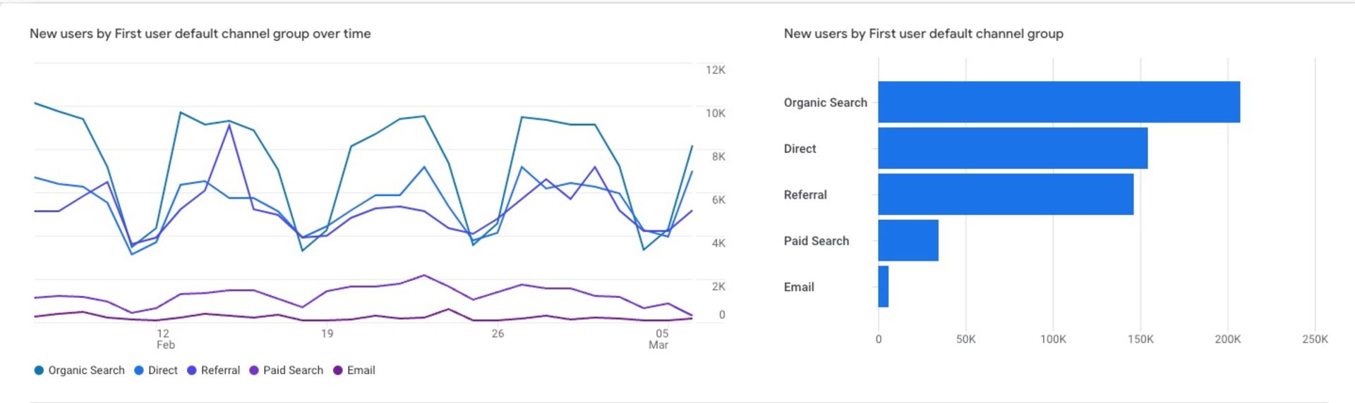 This is an example of a GA4 acquisition report. All your traffic numbers for the week in one place!
