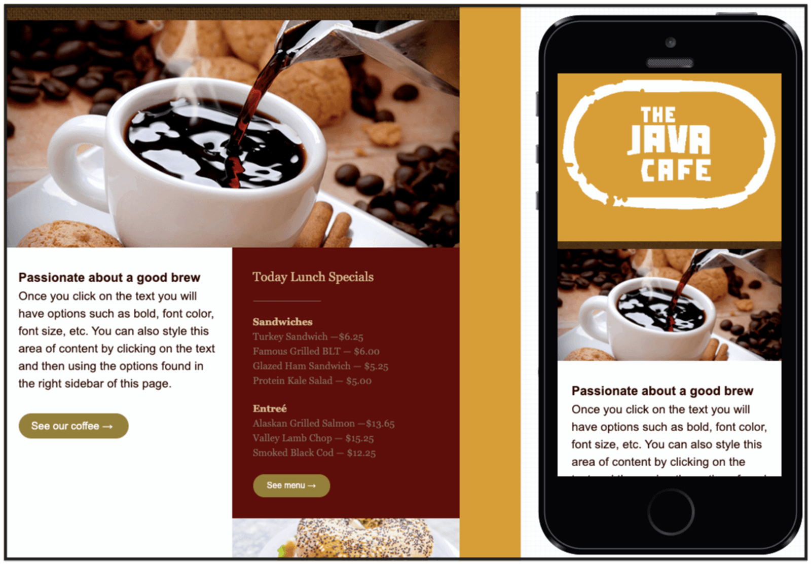 The left side shows you what your email would look like in a browser or desktop, while the right side shows your email’s mobile display so you can optimize for both! All ActiveCampaign templates display both desktop and mobile previews.