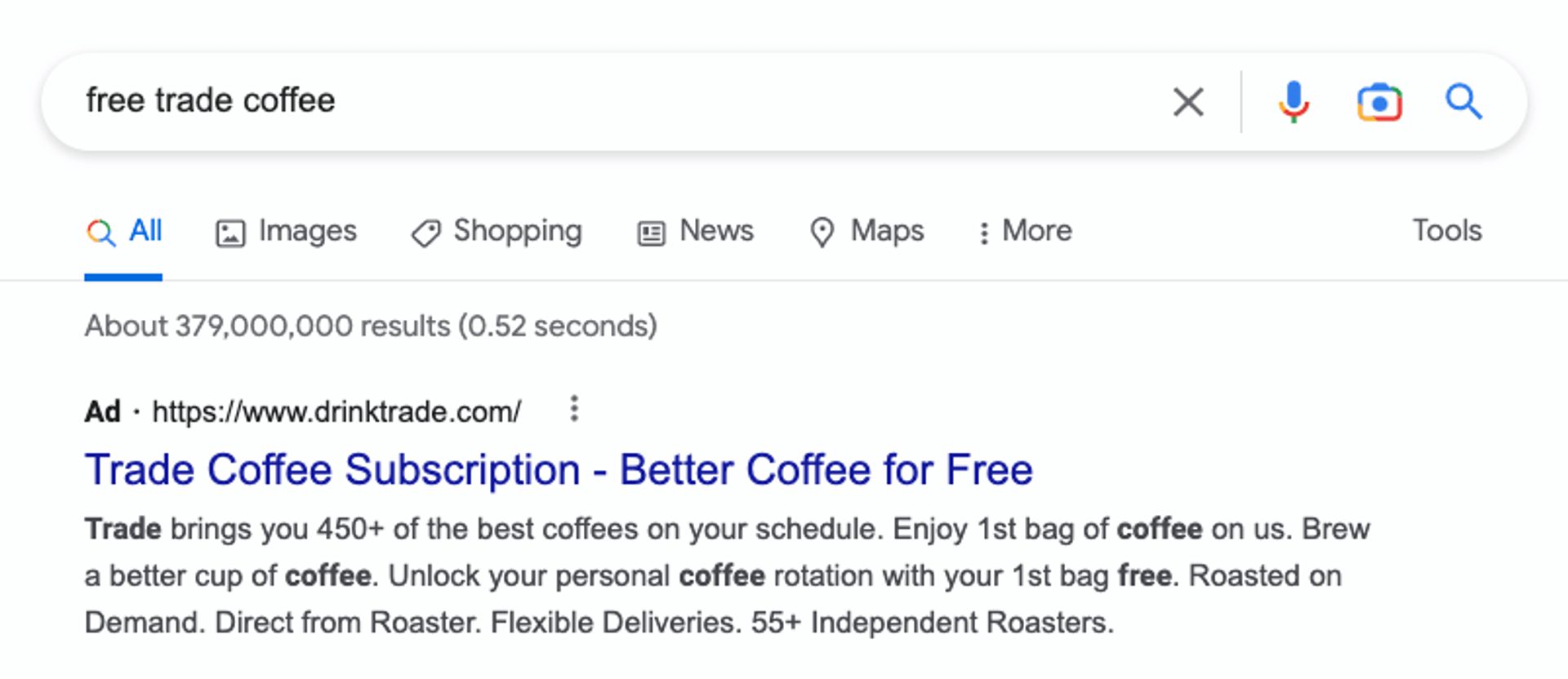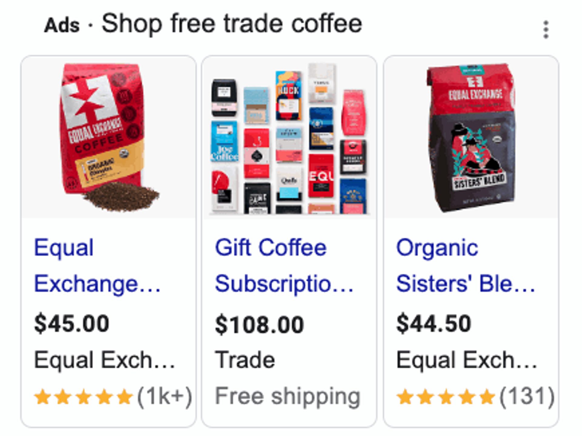 For example, if someone searches for “free trade coffee,” Google shows the top organic search results alongside ads from brands that paid to appear there.
