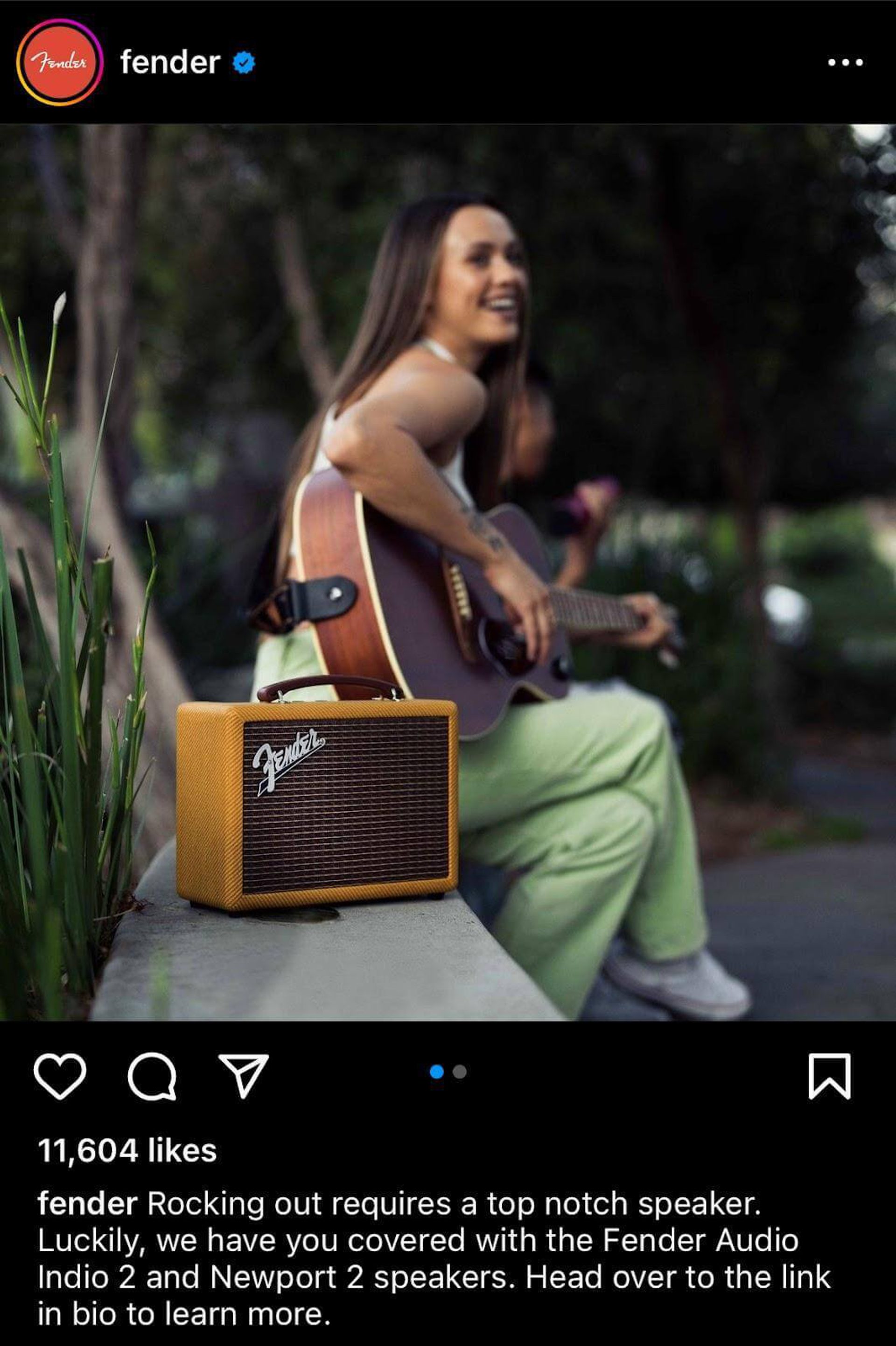 But even an organic post can function as an ad. Brands like Fender often show people enjoying their products in content that fits right in with posts that customers see from their friends.