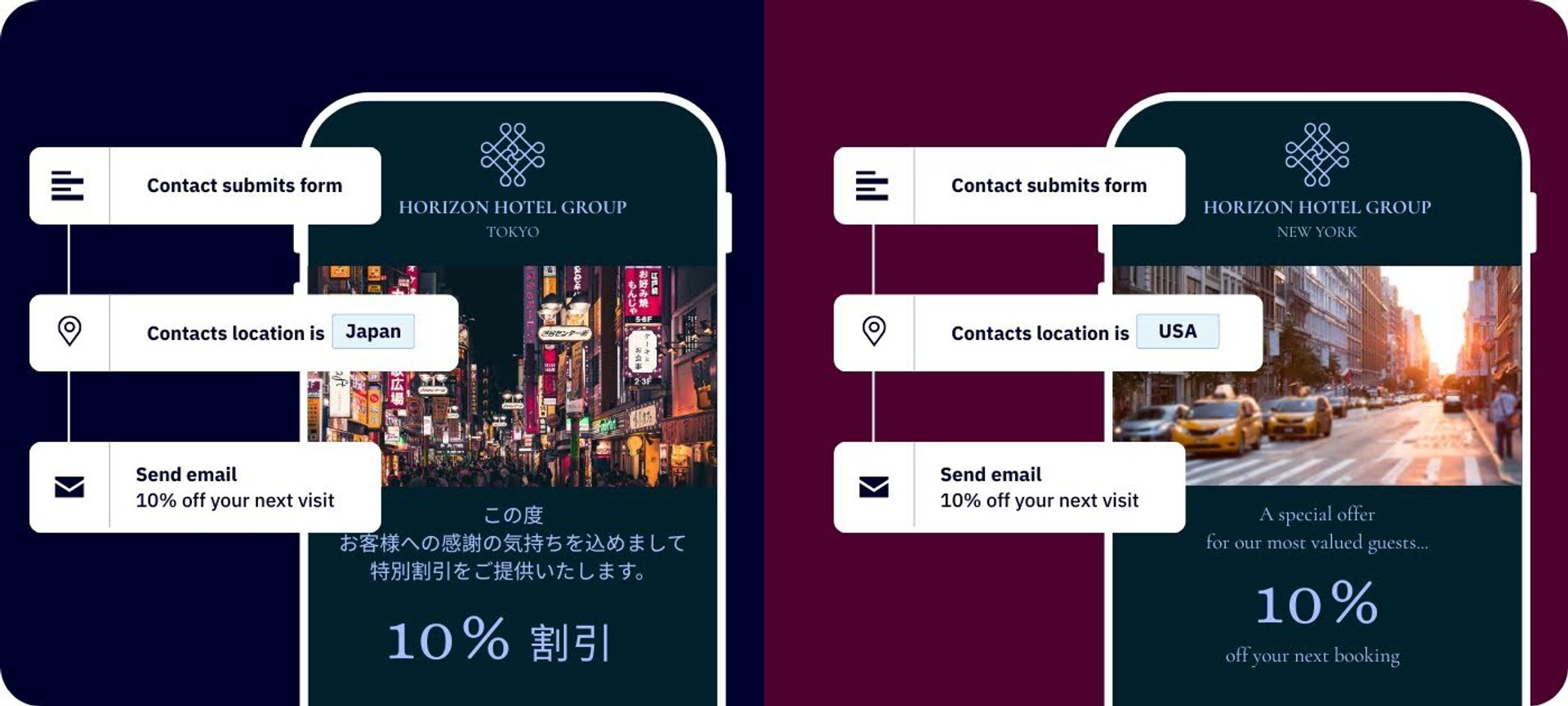 ActiveCampaign HQ Pushdown Automations means you can distribute personalized content to guests of every location across the globe.