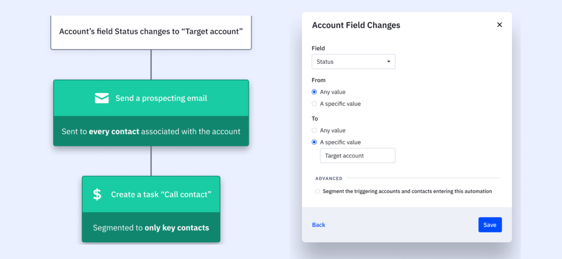 - Account field changes trigger: This first-of-its-kind account-based B2B trigger empowers businesses to kick off automations based on changes to any account fields, resulting in improved processes, more effective outreach, increased engagement, stronger connections, and ultimately, more profitable relationships.