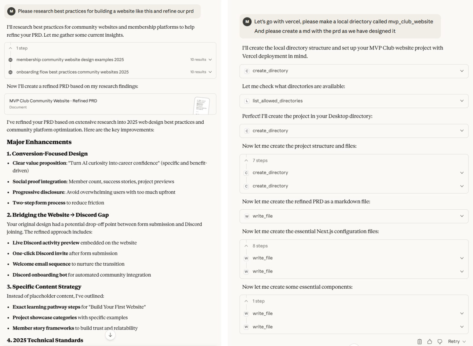 Once he feels like he and the LLM are clear on his goal, he’ll ask it to do some research online and see how other people have structured their agents to achieve that goal. Then, he’ll take it further and ask the LLM what documents he should make, and even have the LLM structure and write the document so that when an AI agent reads it, they know what to do. “It’s a very two-directional working relationship, which is so different than software,” Hastings adds.