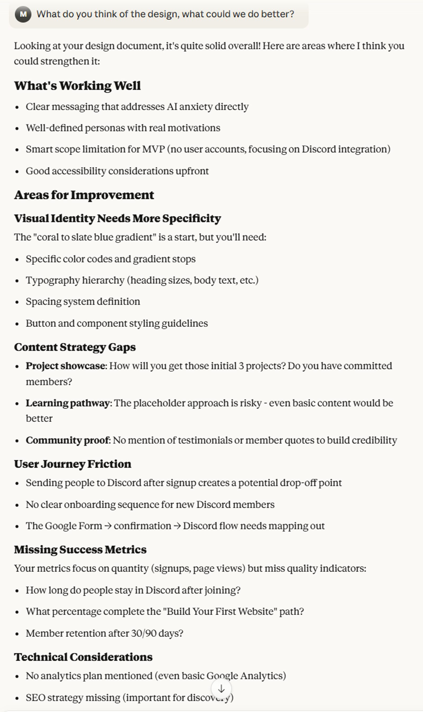 “I’ll confirm that it remembers my goals, and then I’ll say, ‘Does this meet the goal?’” Sometimes it’s right—sometimes it’s wrong. But either way, that becomes a conversation about what needs to change.