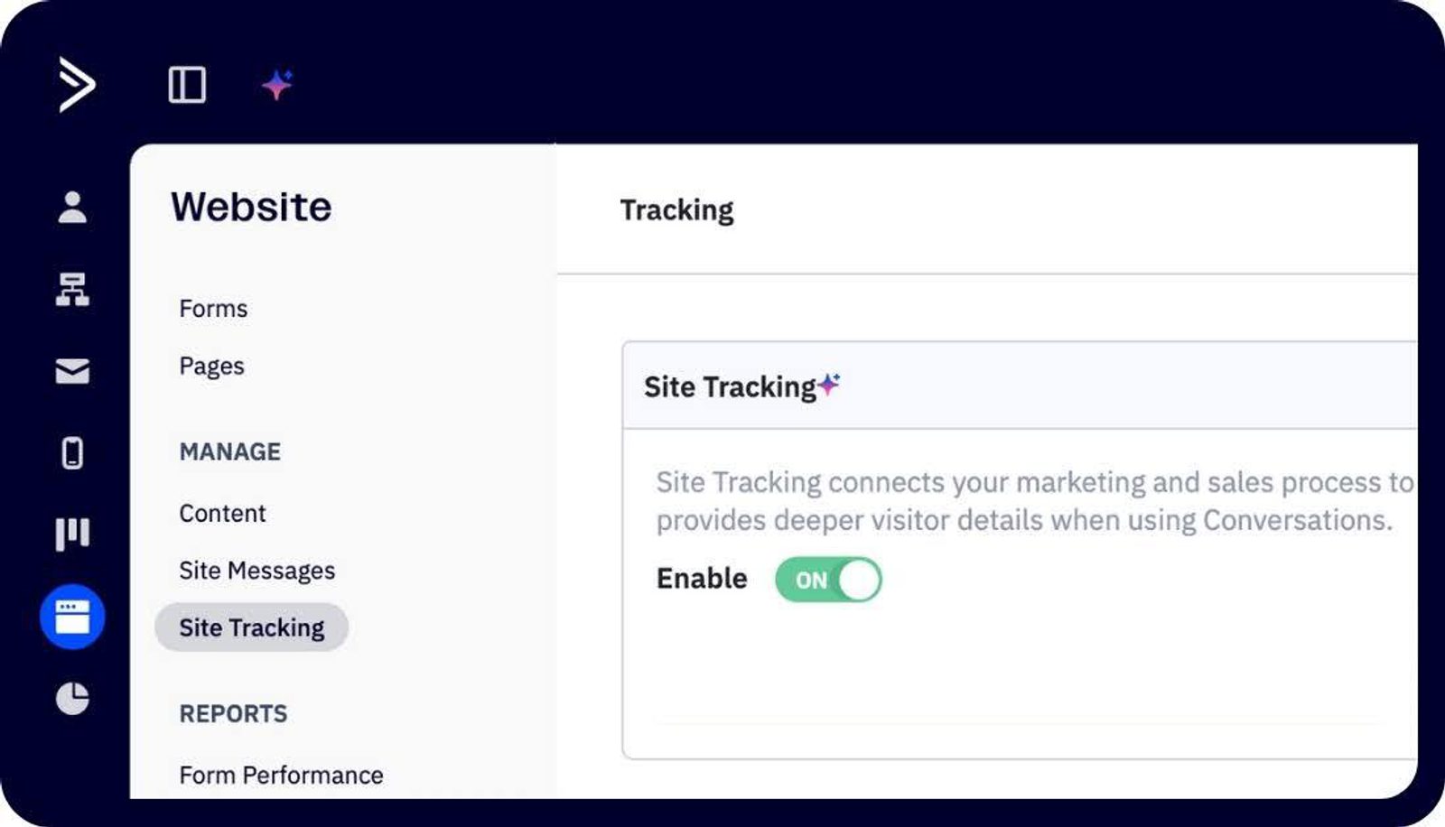 Site tracking records the pages your known contacts visit on your site (like /pricing or /blog/post-name) so you can segment and follow up based on real behavior, not guesses.