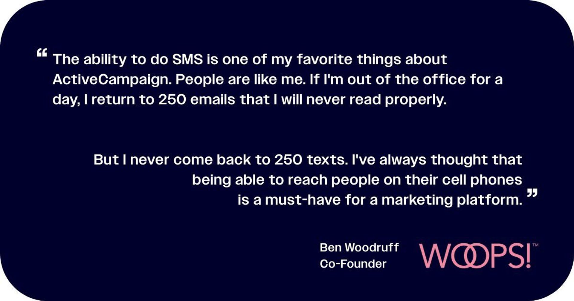 Woops! uses ActiveCampaign’s SMS automations to send timely SMS to potential franchisees rather than adding to the emails flooding their inbox.
