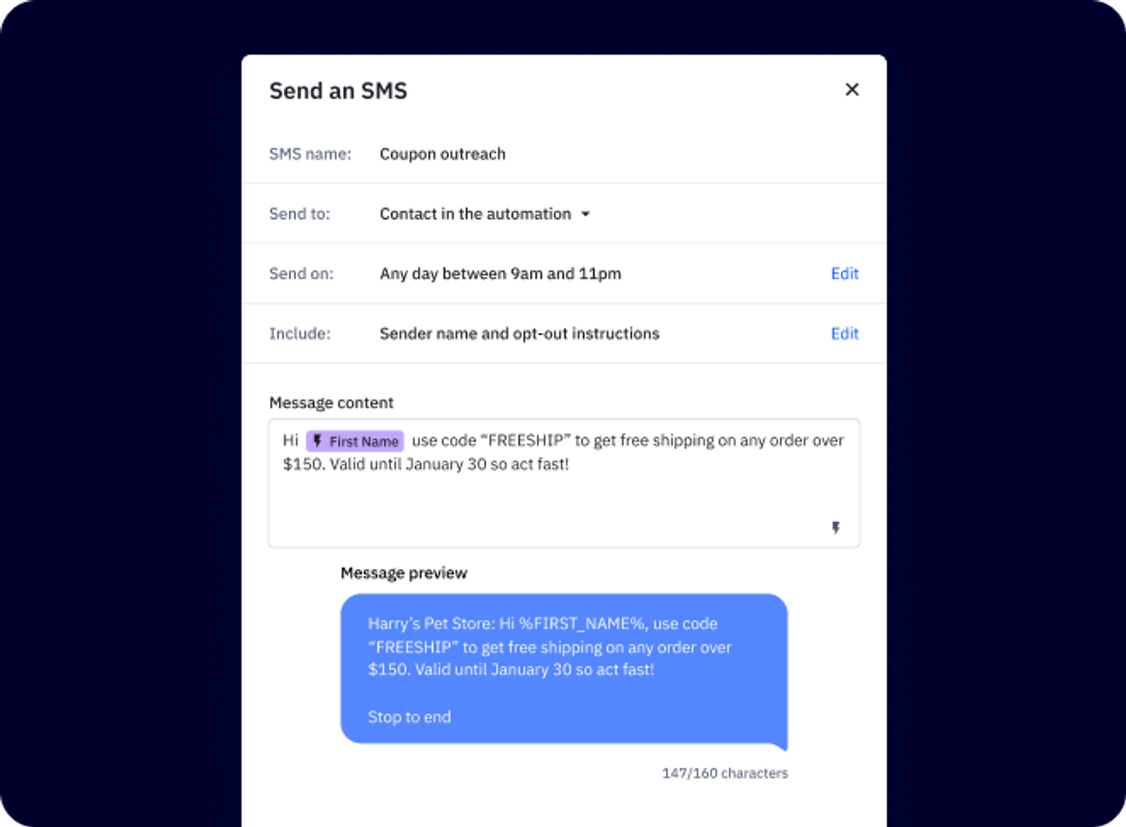 - Lead with the offer mentioned in your SMS (maintain message consistency)