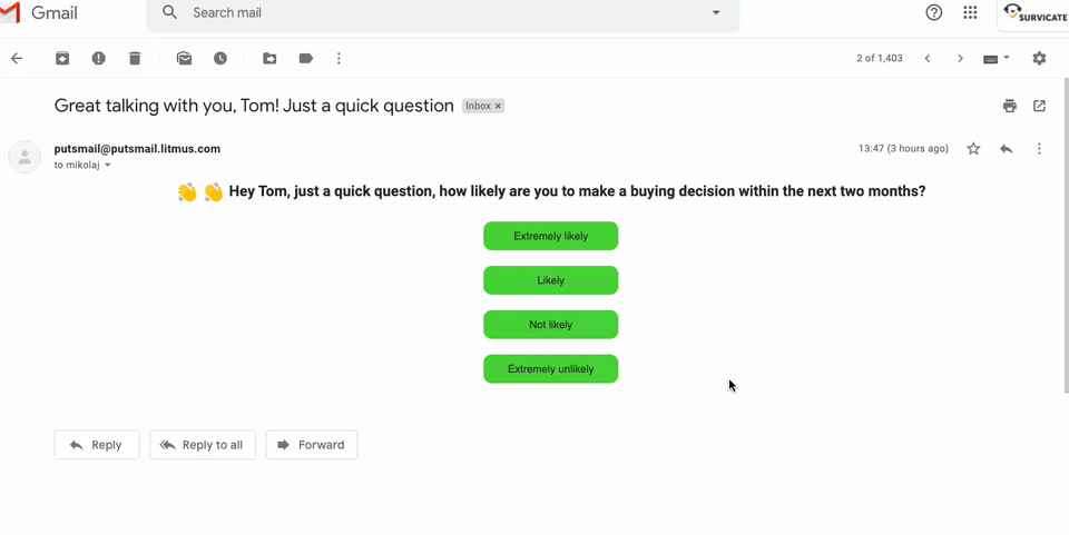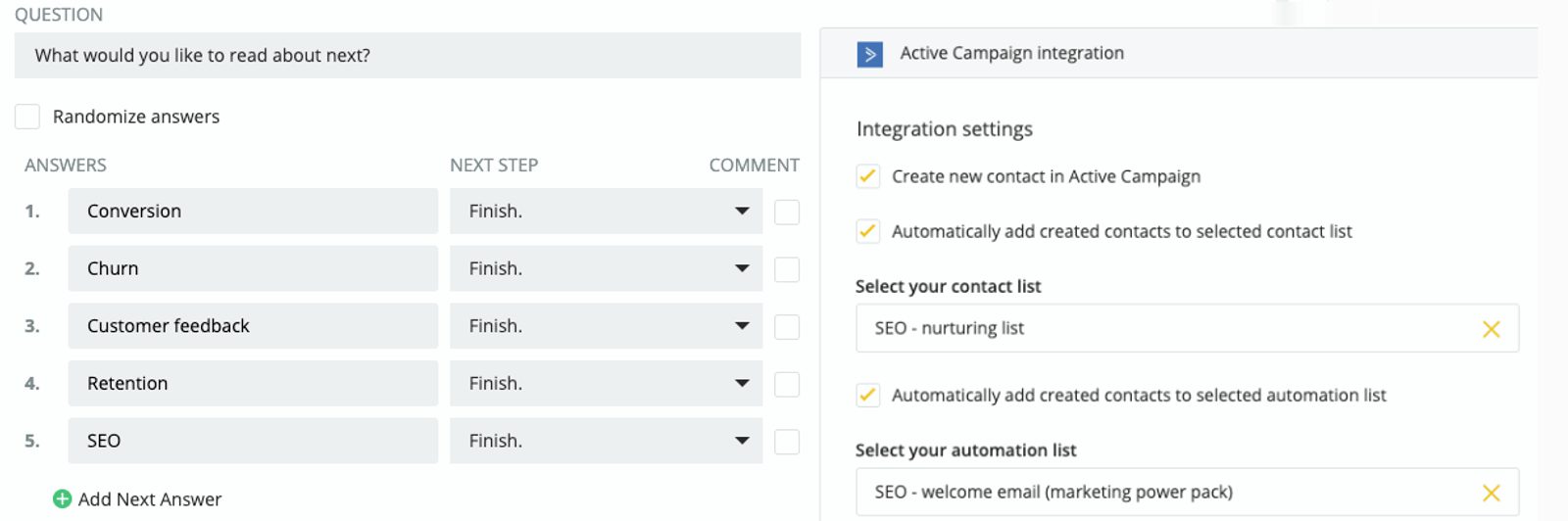 These are all critical bits of information about your leads that will help you map out the best lead nurturing strategy. If you asked all those questions in a lead form, your prospects would be discouraged and wouldn’t submit it. And that’s where surveys come into play!Surveys are the missing piece to effective lead segmentation and nurturing. With a marketing automation platform, you can track user activity and behavior. This certainly helps, but asking your prospects directly will let you get to know them better.That’s why some of the best marketers around the world use surveys as a complementary tool to lead forms and user activity tracking. I’ve found that you need to select a survey tool that integrates natively with your marketing automation platform. This will allow you to map survey responses to your leads’ contact profiles, which in turn lets you trigger follow-up nurture campaigns, improve lead scoring, and personalize your nurturing efforts. You’ll also keep all relevant lead data in one place!