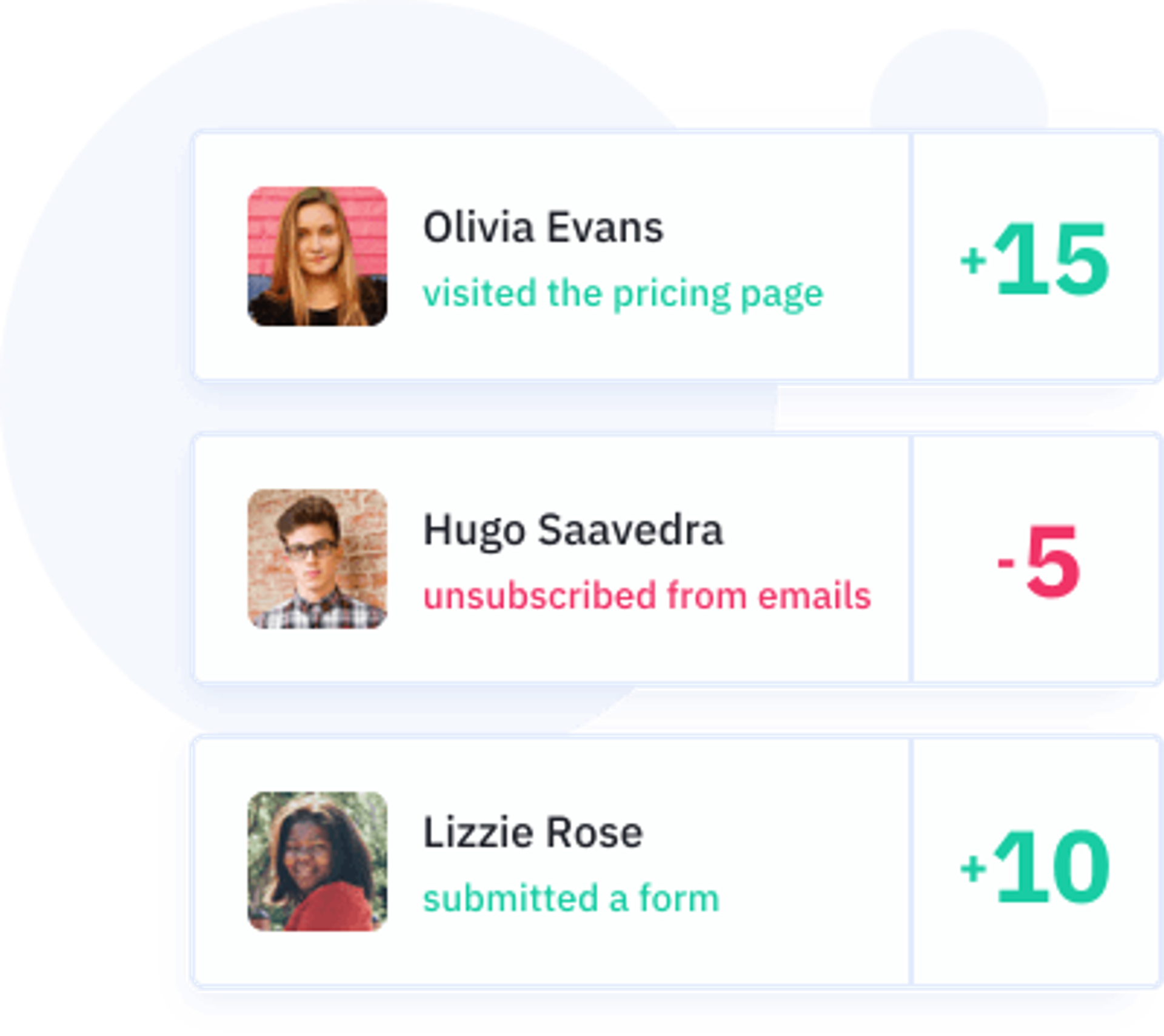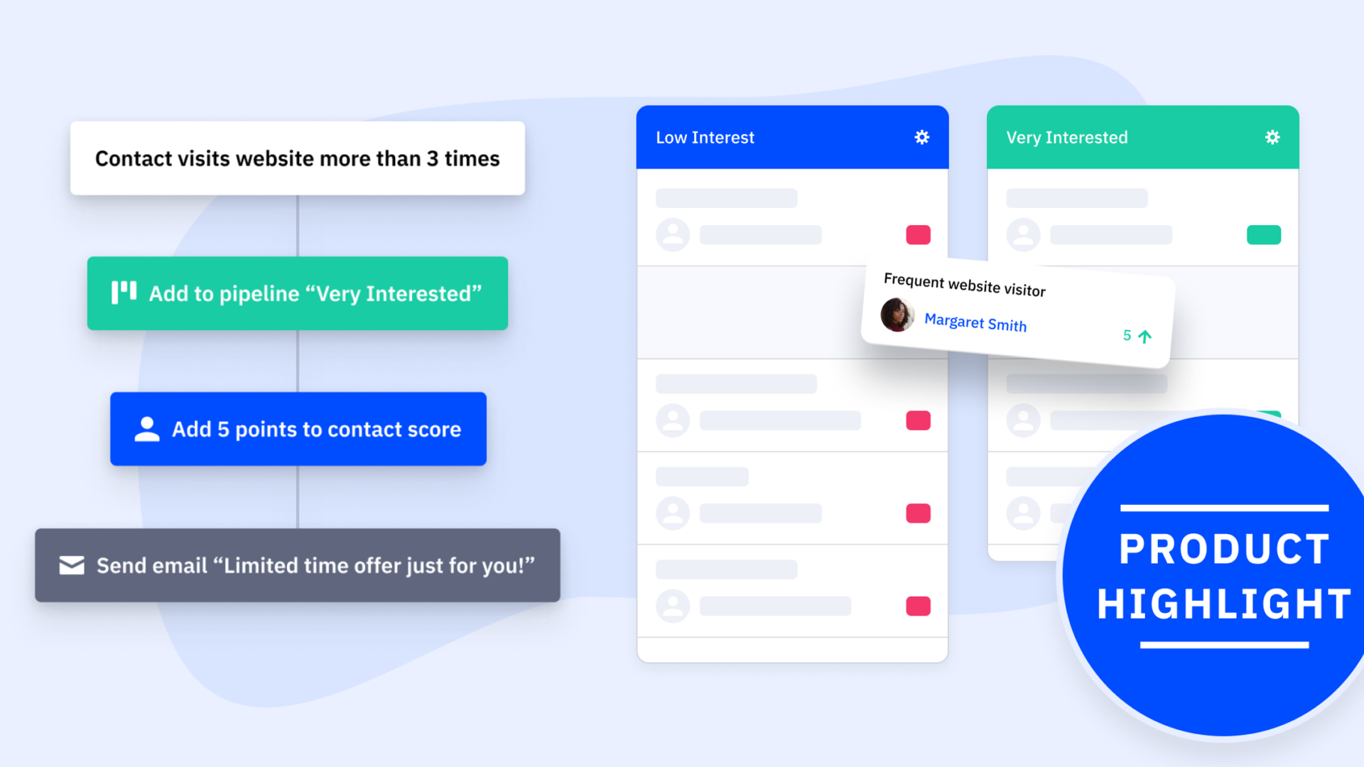 - Contact & lead scoring. As the contact is engaging, or not engaging, the user can track all of that to inform who is most engaged and thus needs more attention and resources applied to drive action.