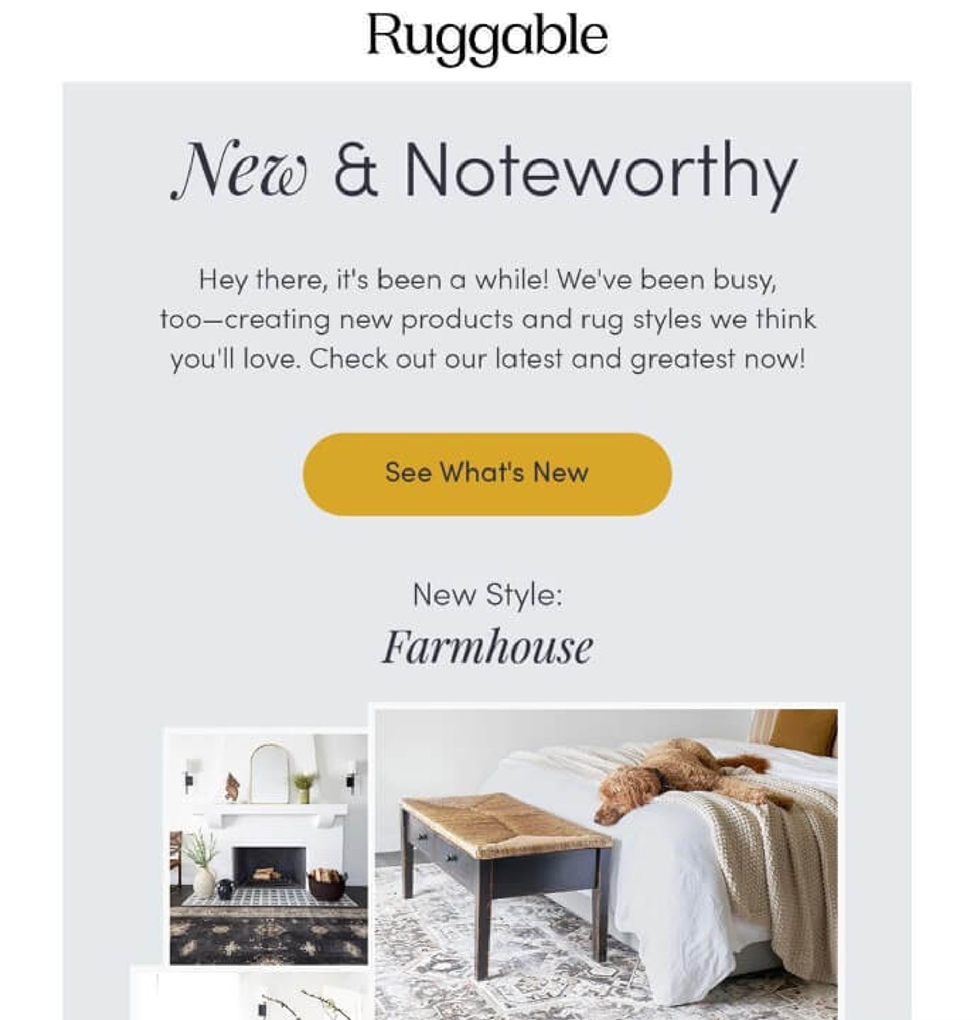 Ruggable takes a fresh approach to re-engagement by showcasing the new and upcoming in their product line. They fully recognize that purchasing a rug isn't an everyday occurrence; for many, it might be a once-or-twice-in-a-lifetime experience. Rather than pushing an immediate sale, their re-engagement email is artfully designed to keep Ruggable at the forefront of customers' minds for that moment when a new rug is needed.