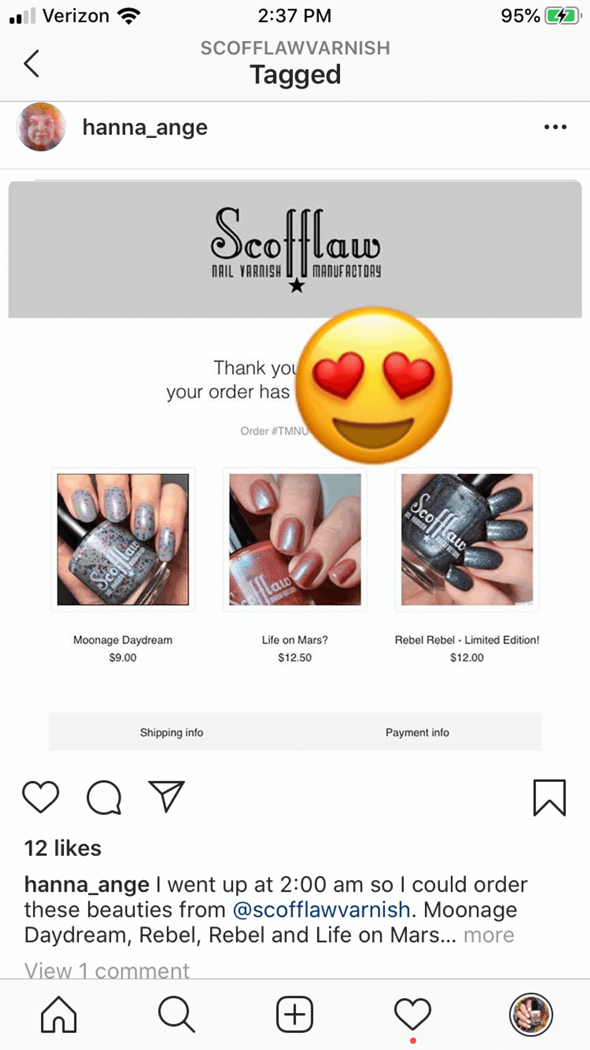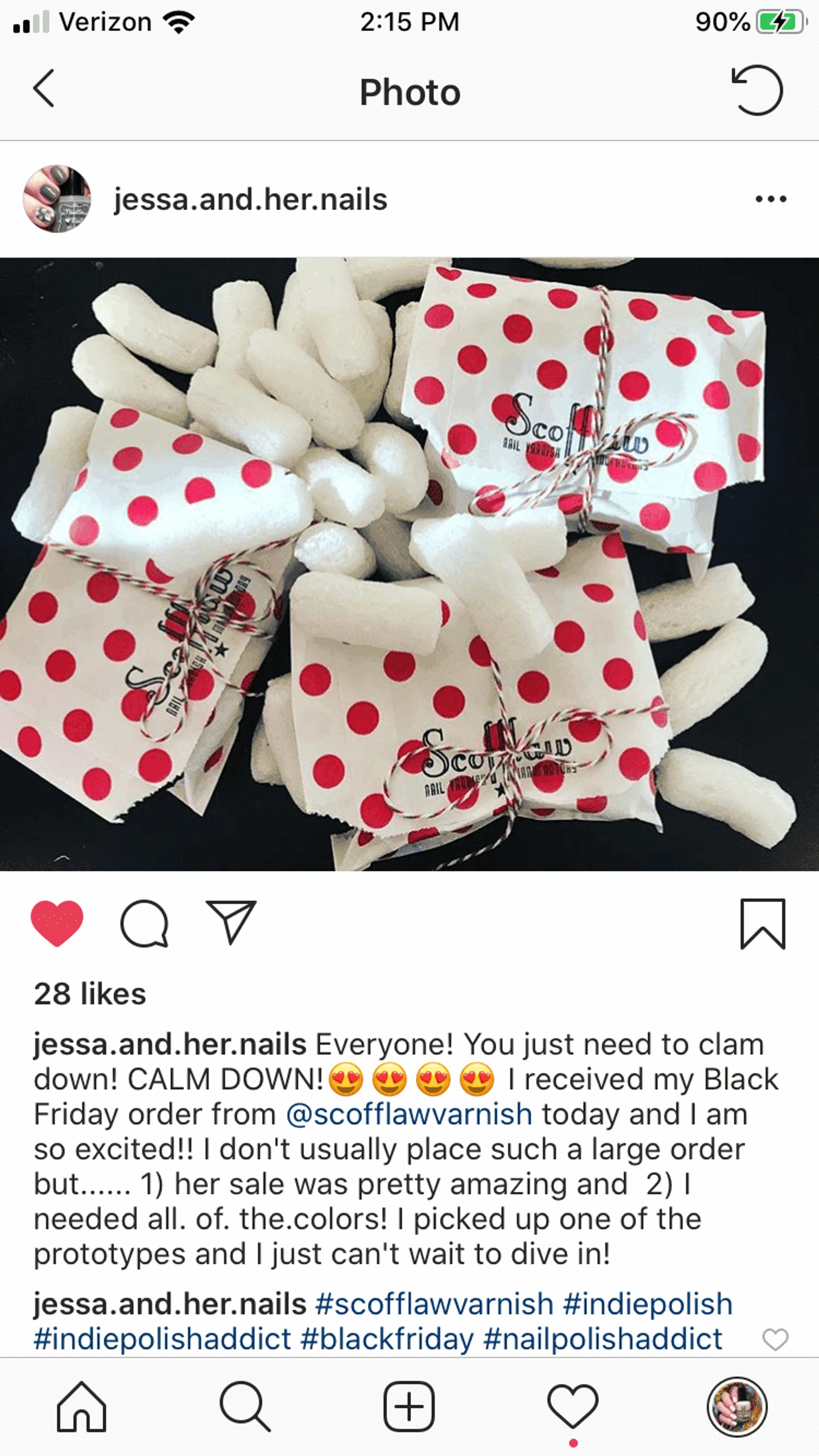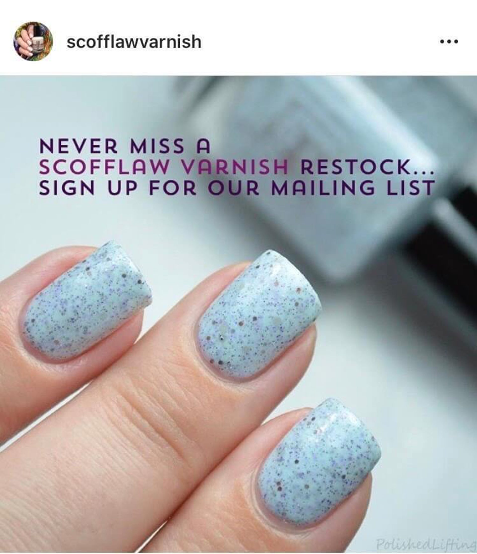 Instagram influencer posts promoting Scofflaw Nail Varnish products