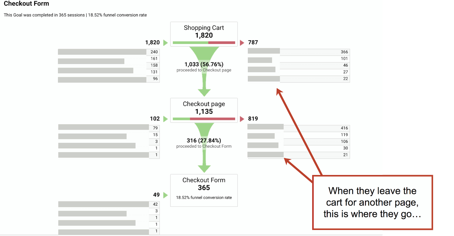 Some people leave your site, but others may click off to different pages. Andy Crestodina, co-founder of Orbit Media, recommends you track where people navigate to on your site after leaving the shopping cart.