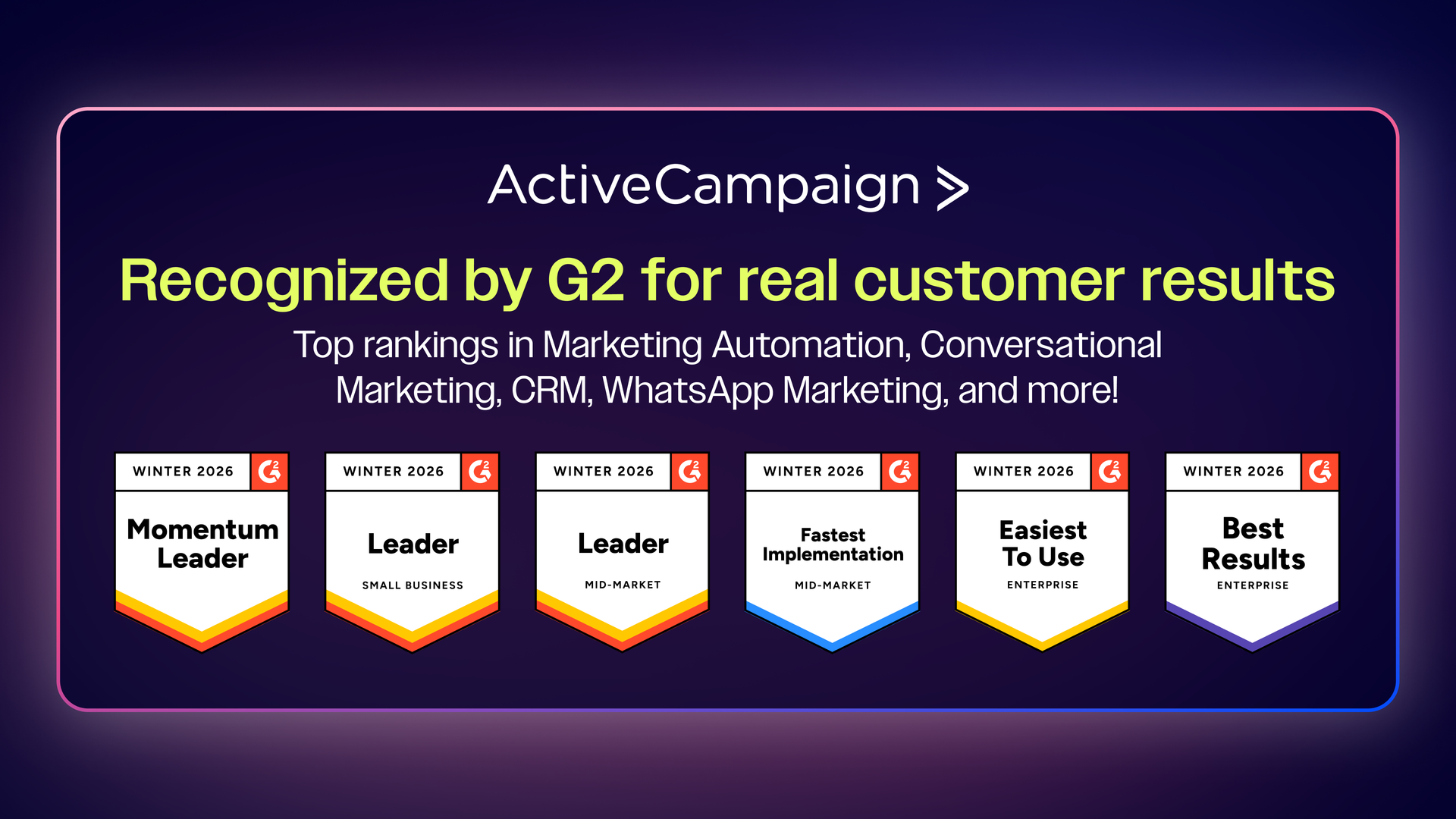 ActiveCampaign was also recognized as a leader in 14 key categories in G2’s Winter 2026 reports: