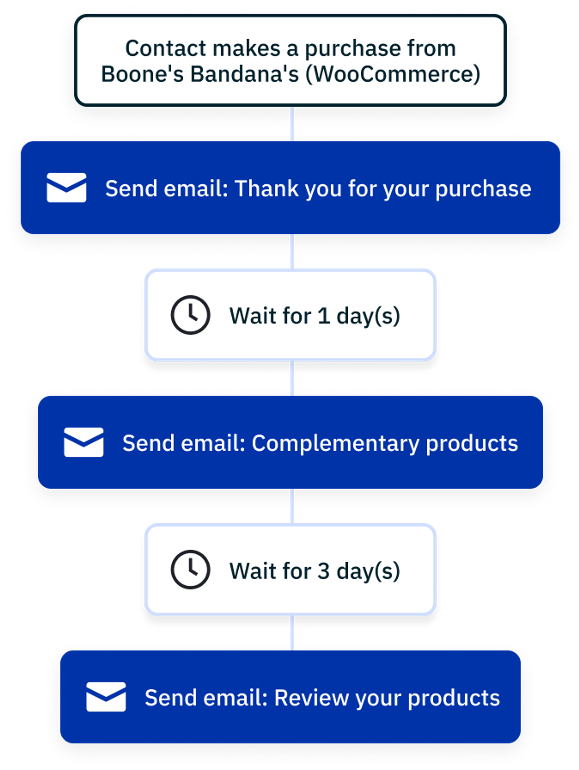 When you install the ActiveCampaign plugin for WordPress alongside the WooCommerce extension, you'll start building strong customer relationships and automate your emails based on custom triggers, actions, and conditions. By doing this, you stick close to your customers as they engage with your site and are able to understand how to best engage them.