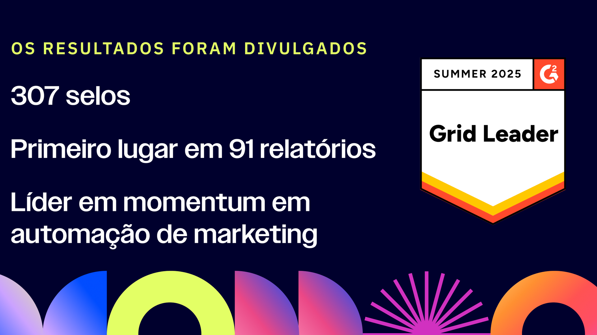 A G2 é o maior e mais confiável marketplace de software do mundo. Mais de 100 milhões de pessoas recorrem à G2 todos os anos para tomar decisões mais inteligentes sobre software, com base em avaliações reais de outros usuários. Esses prêmios refletem as experiências reais e o feedback dos nossos clientes, e temos muito orgulho em ver esse reconhecimento se manter entre as ferramentas que mais importam para profissionais de marketing e equipes em crescimento.