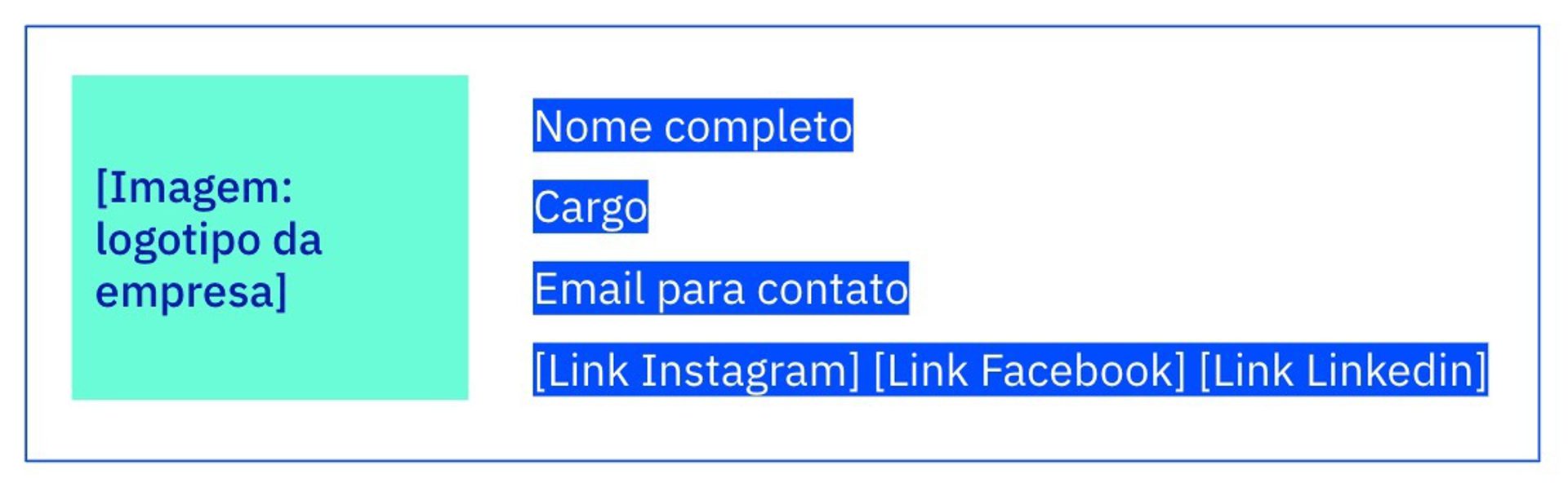 Ou seja, se você deseja dar destaque ao seu nome ou ao nome da sua empresa, coloque essas informações no topo da assinatura.
