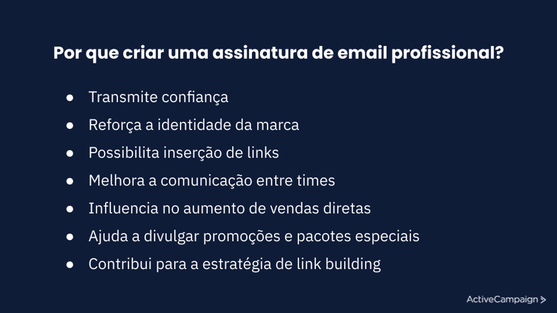 De certa forma, a assinatura de email é a versão digital do antigo cartão de visitas. Profissionais trocavam seus cartões para compartilhar informações de contato com clientes, fornecedores e parcerias.
