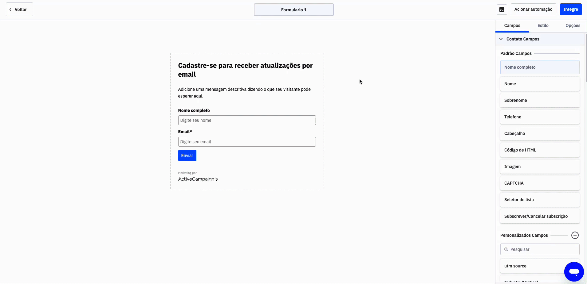 Disponibilizamos mais de 100 novas fontes para personalizar os formulários da ActiveCampaign. Além disso, agora é possível editar os textos separadamente, alterando cores e estilo da fonte do cabeçalho e do parágrafo.