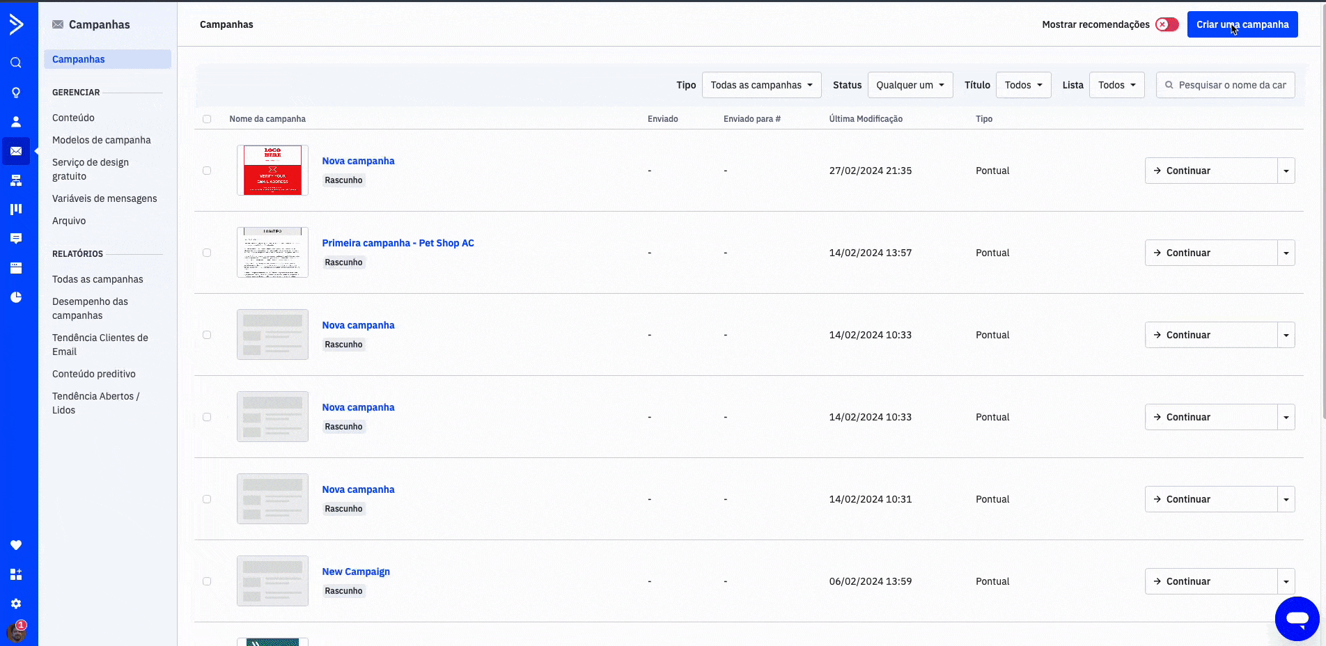 No mês de fevereiro de 2024, tivemos atualizações e melhorias nas áreas de formulários, campanhas e nas configurações de autenticação de domínios de email.
