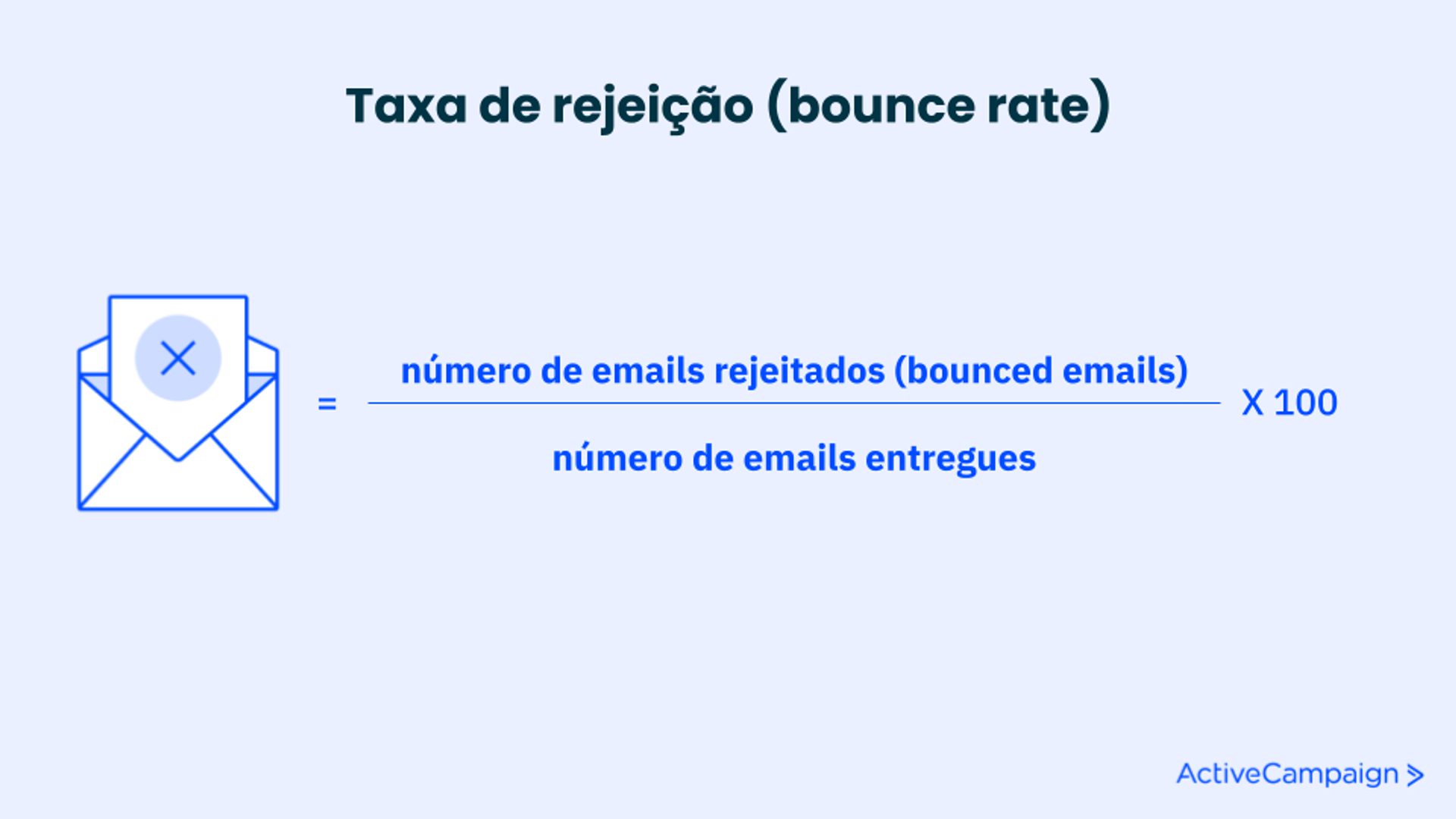 A taxa de rejeição é o percentual de mensagens que não podem ser entregues. O cálculo é feito dividindo o número de emails rejeitados pelo número de emails entregues e multiplicando por 100.