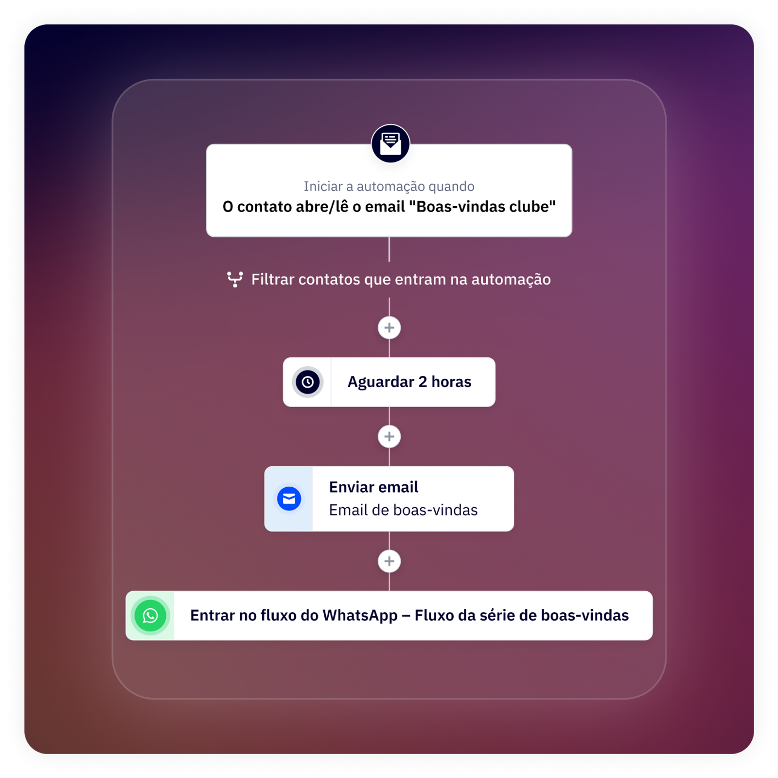- Acompanhar os alunos em sua jornada: uma vez inscritos, os alunos receberam um fluxo constante de acompanhamentos, lembretes de tarefas e recursos relevantes, o que os mantém informados sobre o que esperar em cada etapa de sua jornada.
