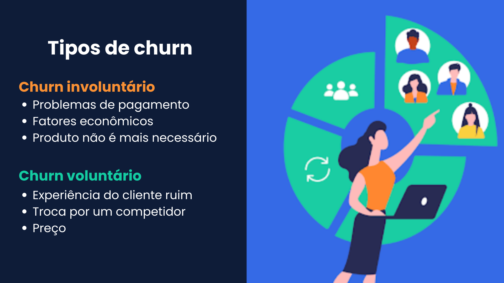 O churn voluntário acontece quando um cliente decide conscientemente deixar seu negócio. Por exemplo, um cliente pode ter uma experiência negativa com sua empresa ou preferir um concorrente.