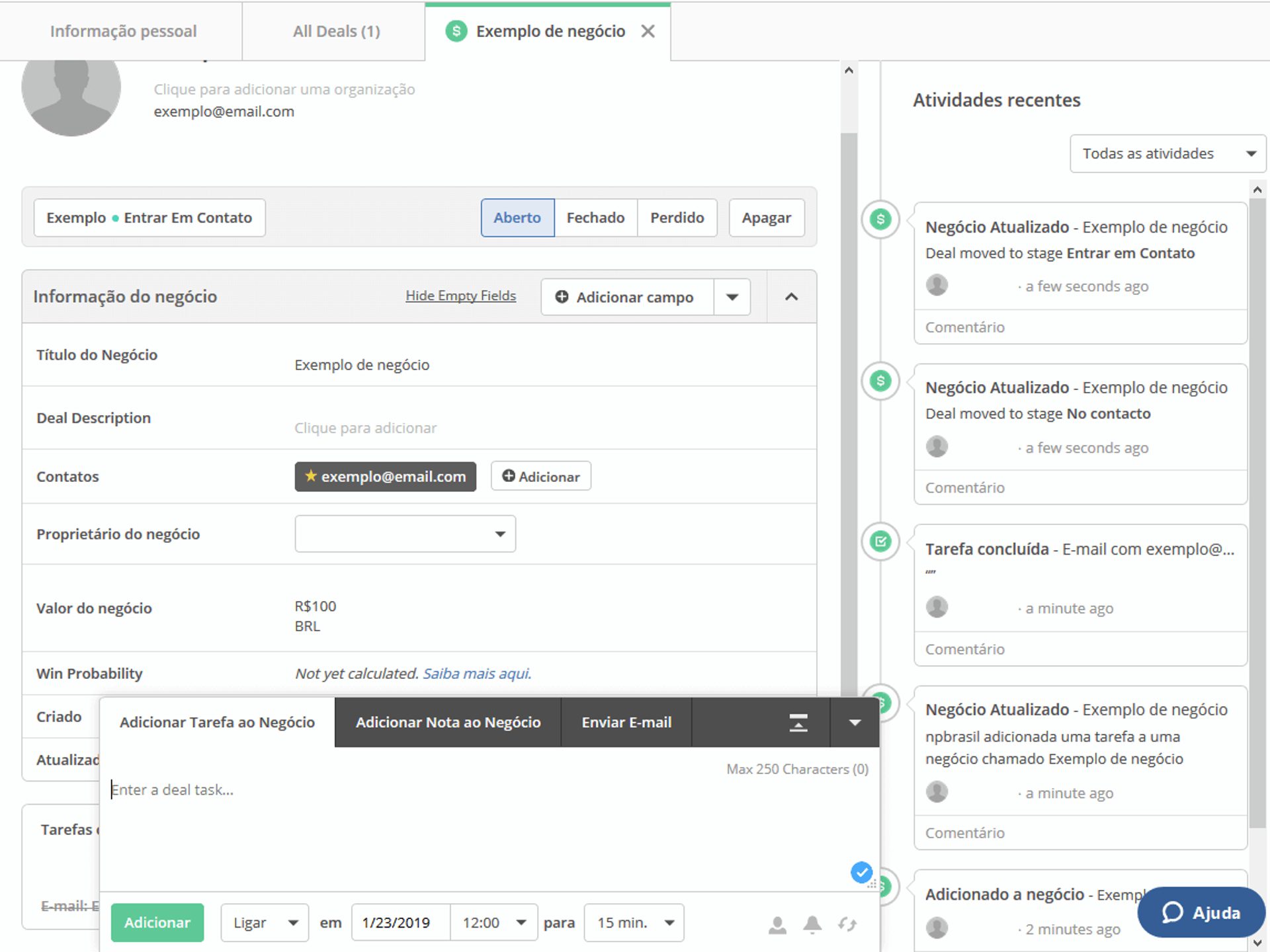 O ideal, então, é contar com uma plataforma que possibilite a criação de tarefas e acompanhamento do andamento de negócios nativamente.