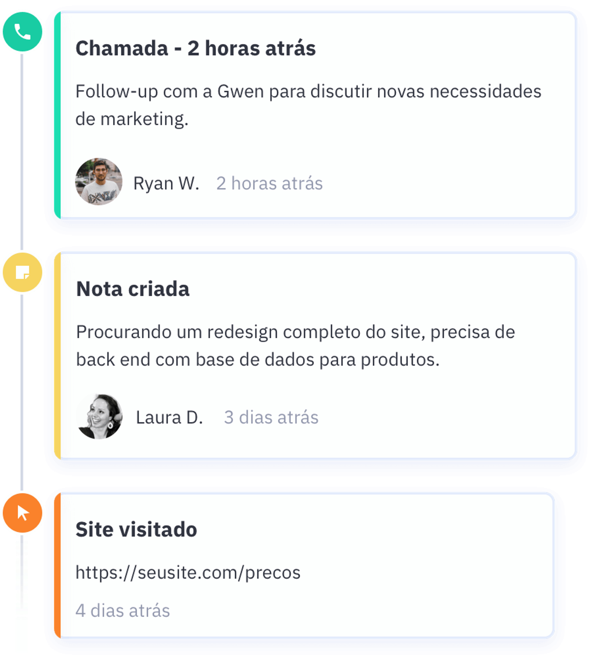 O histórico de negócios também garante que nenhuma interação passe despercebida, ajudando sua equipe a estar sempre alinhada.